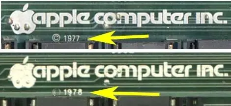 Rev1版Apple II(Apple Computer Inc.)下方印有“©1978”的字样