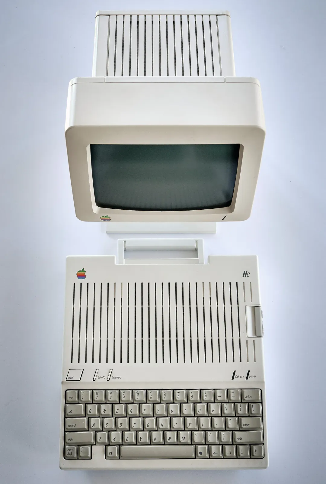 Apple IIc是最小且相对便携的 Apple II 电脑。1981 年夏天,苹果公司内部有人提出,应该开发设计一款便携式 Apple II,一款和书本大小差不多的计算机。直到 Macintosh 项目进行一段时间后,史蒂夫·乔布斯才对这个提议产生兴趣,认为这是一个极具挑战性的创意和想法,并着手开始实施: