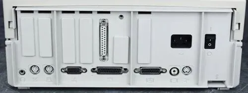 从外观上看,它是一台标准的 Apple IIGS,但有几个小例外。在计算机的左前面板上,为了访问内置的 3.5 英寸磁盘驱动器,有人专业地切割了一个插槽。计算机底面的一个标签上有一个个位数的序列号“5”,以及名字“马克·吐温”。软盘驱动器显然不是 SuperDrive(它无法读取格式化为 1.4 兆字节的磁盘),它位于电源的前面,一个半高 40 兆字节 SCSI 硬盘驱动器的上面。对计算机内部的进一步检查显示,只有五个插槽,缺少了插槽 5 和 7(由于 3.5 英寸软盘驱动器通常映射到插槽 5,而硬盘通常连接到插槽 7,所以这并不是什么重大损失)。传统的Apple IIGS 内存扩展插槽不见了,取而代之的是两个空的 64 针 SIMM 插槽。主板上进行了一些手工布线更改,但当时这些更改的具体性质尚不清楚。电源的位置挡住了插槽 1 的背板开口,电源插头和电源开关也从其通常位置移动了一小段距离。在背板的最左侧是耳机插孔(已改为支持立体声),其上方还有一个更小的插孔,他们判断那一定是用于麦克风的。背板上似乎还有一个新的 25 针端口,推测是用于连接其他 SCSI 设备。