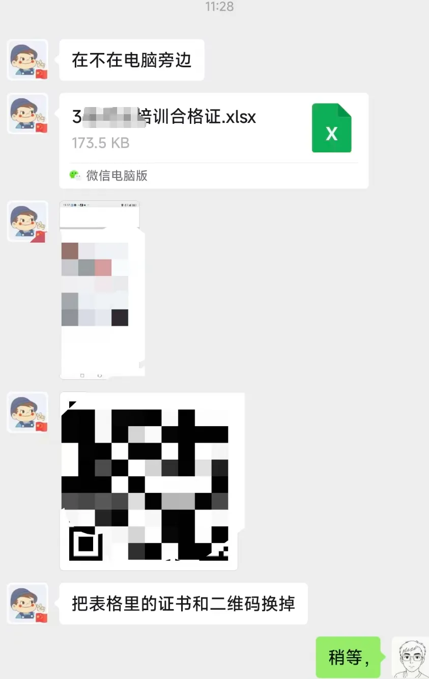 他说:"有个表格要改一下图片,还要换个二维码。但是我在外面,想让你帮下忙的。"