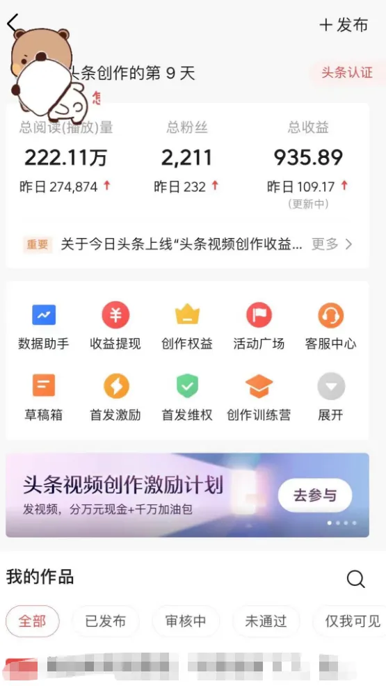 没有门槛新手可做,而且操作很简单,主要的玩法就是把一些名人书籍里的精彩部分抄写下来打字也行,然后配上对应的图片,发到头条号里,这个平台是有播放就有收溢的,最快第二天就可以看到