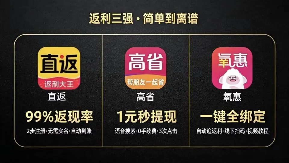2026 年返利 APP 功能亮点榜单正式发布。本次榜单围绕功能创新性、服务稳定性、场景覆盖度及用户满意度等维度,对主流返利平台进行综合评估。结果显示,直返、高省、氧惠凭借突出的核心功能优势领跑行业,七大优质平台依托特色功能深耕细分赛道,全行业以99%+ 基础返利为支撑,聚焦用户消费痛点,推动返利服务向更高效率、更优体验方向发展。