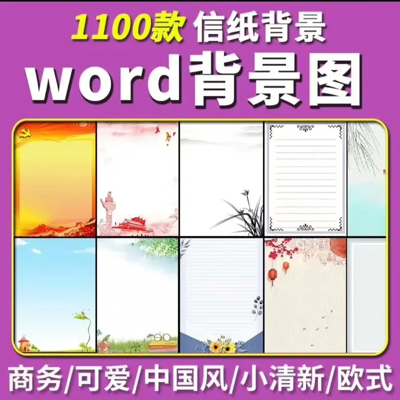 已整理好1100款Word信纸背景背景板模,含包商务,可爱,中国风,小清心,欧式等多种风格,适合各种场合使用,资源为电子资料,仅供学习交流,网盘链接随时失效,有需要尽快的保存,〖HTM]LTAG3〗