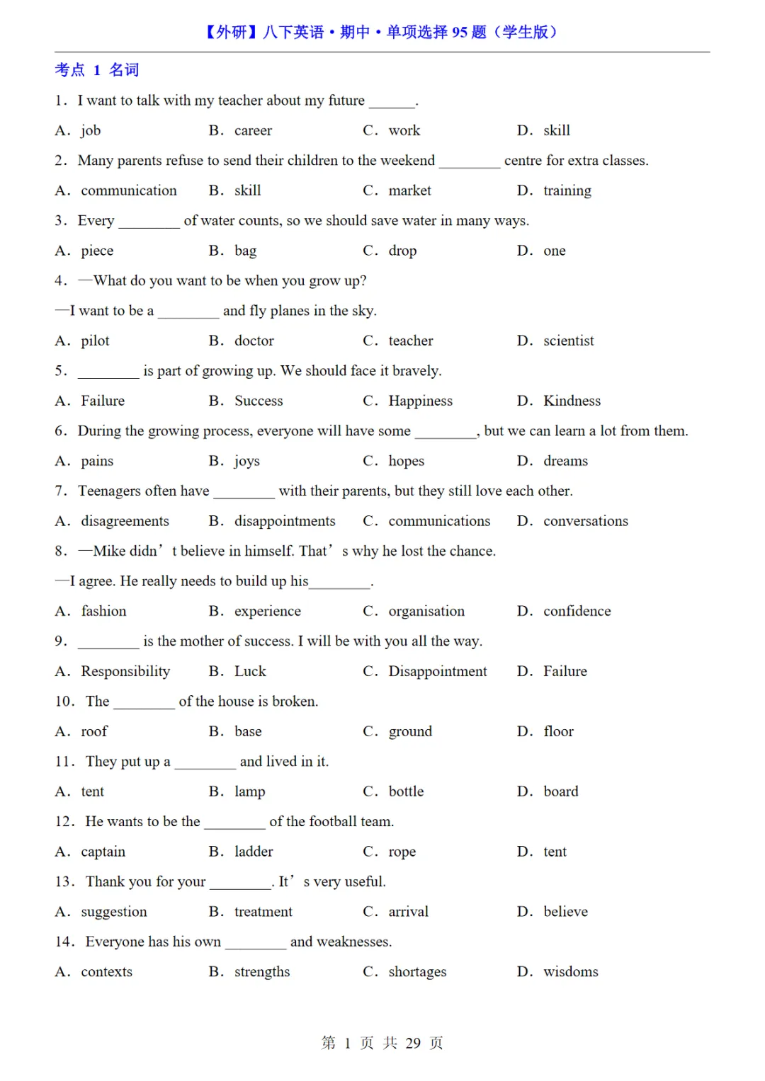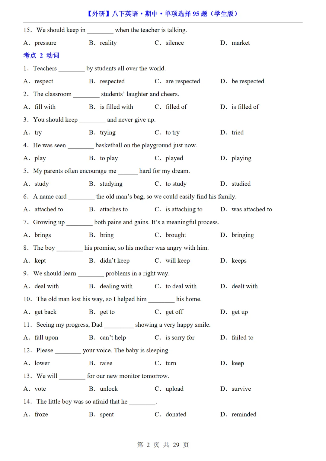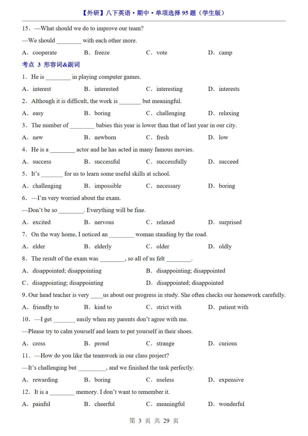 八年级(下)英语期中单项选择95题(外研版)