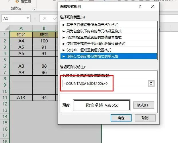 最好的方式是使用:=Counta($a1:$d100)>0 ,来判断整个区域是否为空。