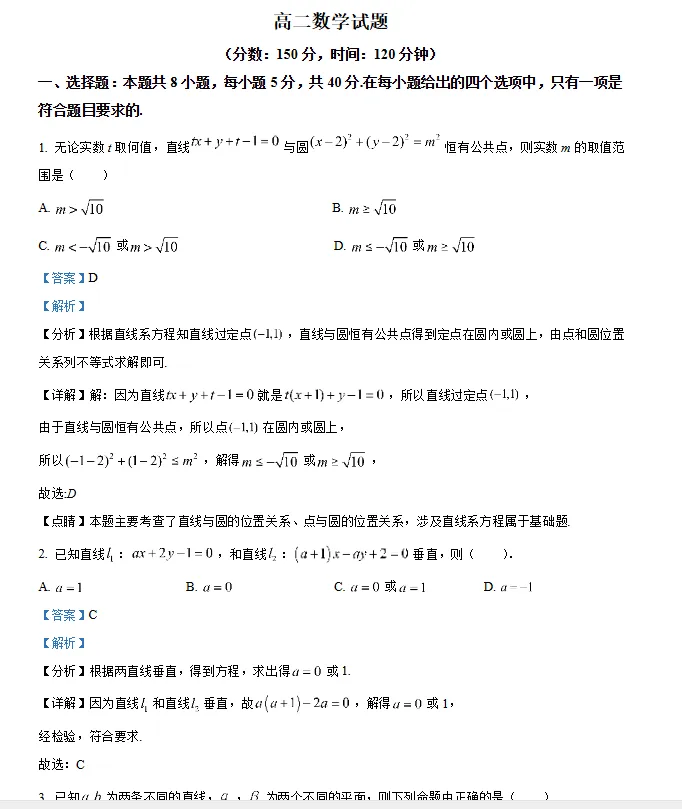 【高中】高二数学全国名校试卷专题合集(可打印)