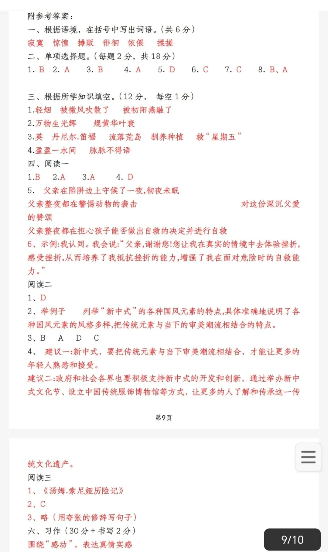 二、单项选择题。(每题2分,共18分)1.下列加点字读音和字形全部正确的一项是( )
