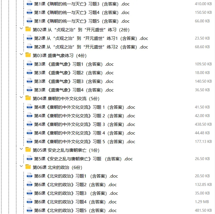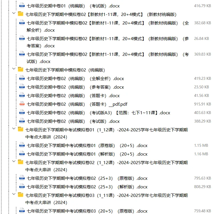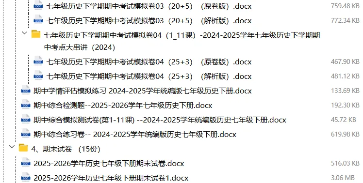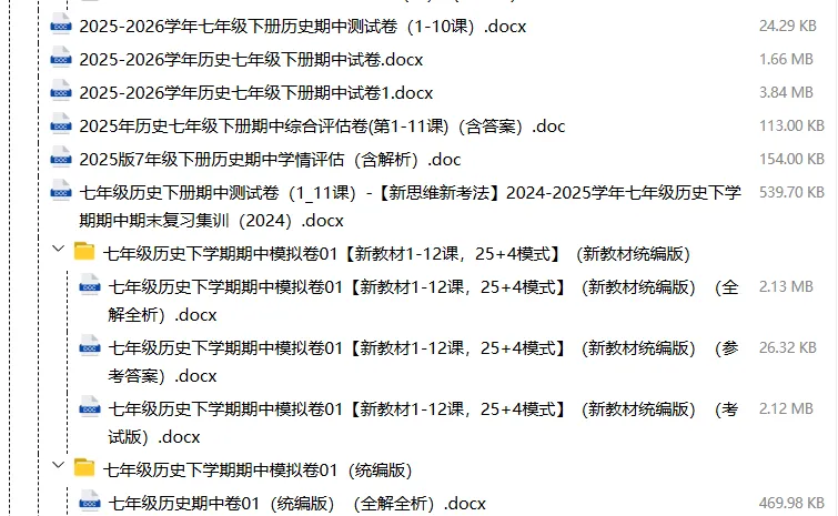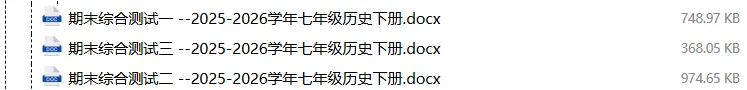 【电子版】2026春人教版初中七年级历史下册 (课时练习+单元测试+月考试卷+期中试卷+期末试卷)全套下载 可编辑打印注意:下拉到文章底部有二维码的地方下载01资料目录下拉到文章底部有二维码的地方下载02资料阅览版面有限 仅展示部分内容下载方法长按二维轻松下载电脑下载,方便保存复制网址去电脑打开:https://jazpan.com/view/2449708更多资源,关注以下公众号教师·学生图文来自网络,版权归原作者,如有不妥,告知即删点击阅读原文下载1-12年级全部资