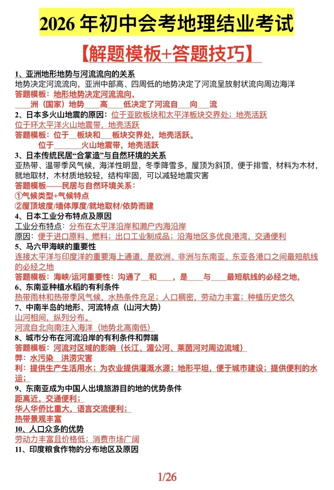 初中会考地理结业考试【解题模板+答题技巧】初中会考地理结业考试【解题模板+答题技巧】,成绩弱的考生,考前认真看一遍,做题直接套用,稳稳拿高分哦,想要获取全部的家长,进来沟通一下哦,都是2026年考纲里面必出的重点,赶紧给孩子拿走复习吧 #初中会考地理