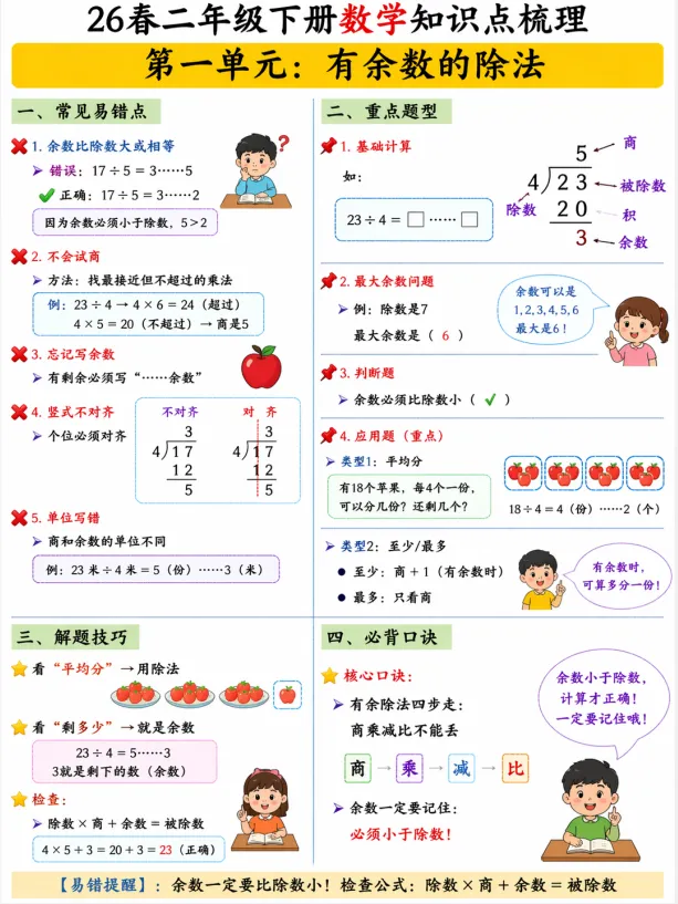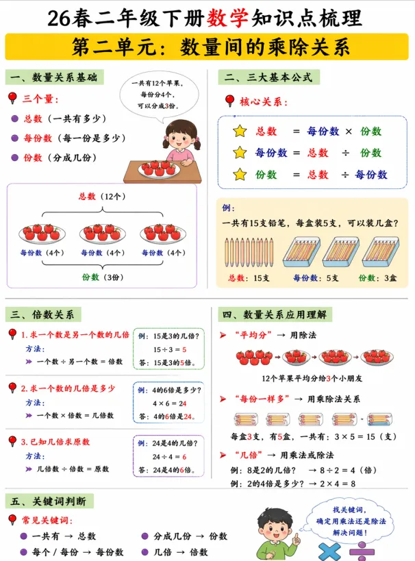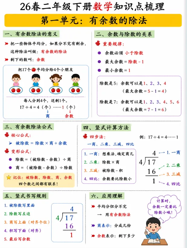 【知识点梳理】二年级下册数学知识点梳理,pdf电子版可打印。完整电子版请拉至文末左下角阅读原文处自取,欢迎收藏和下载。