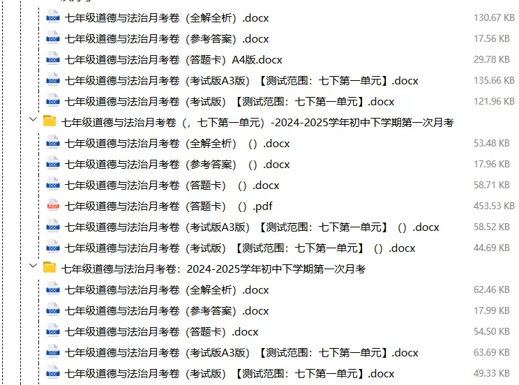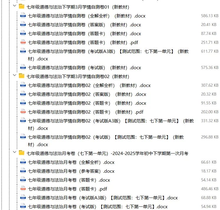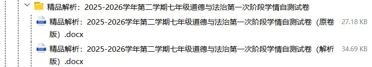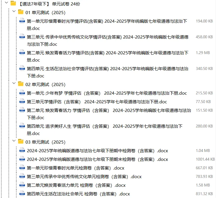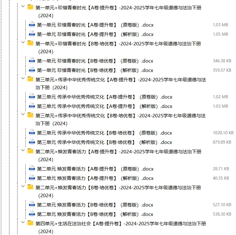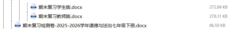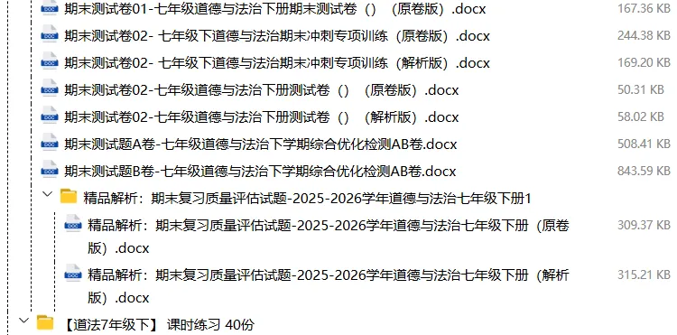 【电子版】2026春人教版初中七年级道德与法治下册 (课时练习+单元测试+月考试卷+期中试卷+期末试卷)全套下载 可编辑打印注意:下拉到文章底部有二维码的地方下载01资料目录下拉到文章底部有二维码的地方下载02资料阅览 版面有限 仅展示部分内容下载方法长按二维轻松下载电脑下载,方便保存https://jazpan.com/view/2449706更多资源,关注以下公众号教师·学生图文来自网络,版权归原作者,如有不妥,告知即删点击阅读原文下载1-12年级全部资料