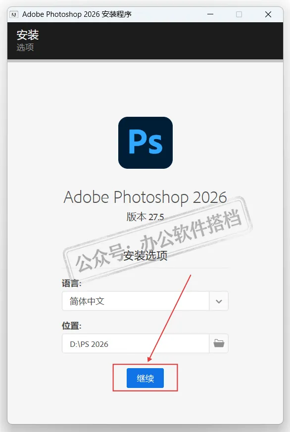 PS软件2019到2026版本安装教程是一样,所以下面使用最新版PS2026示范!
