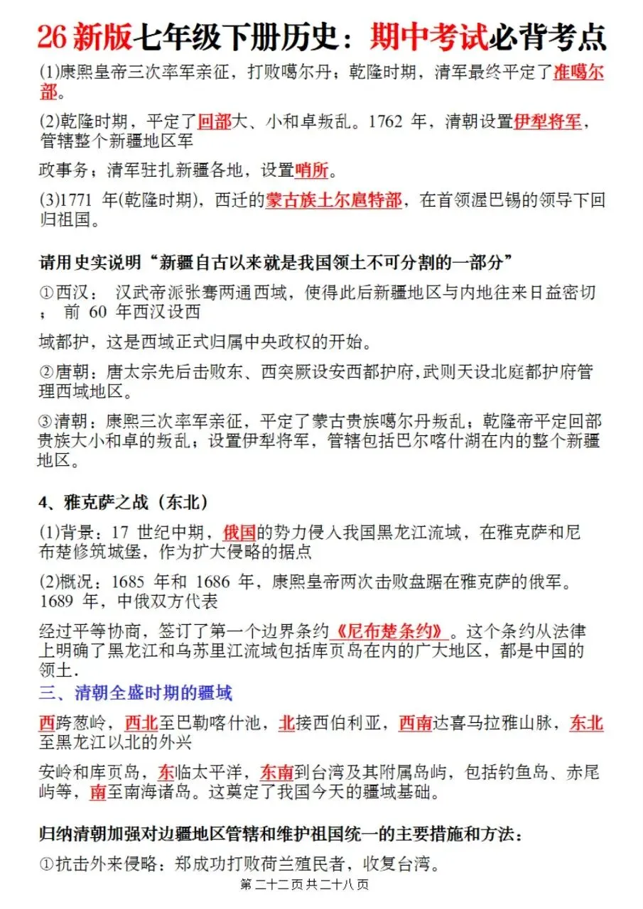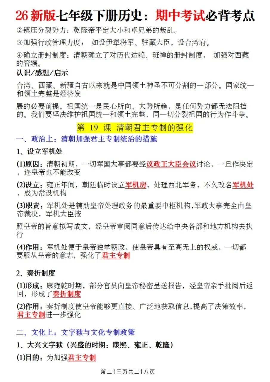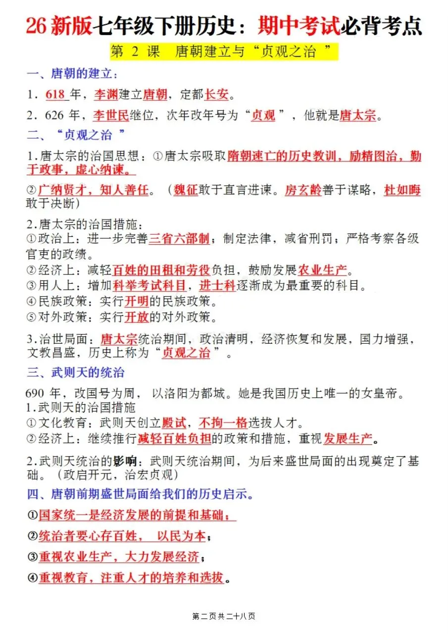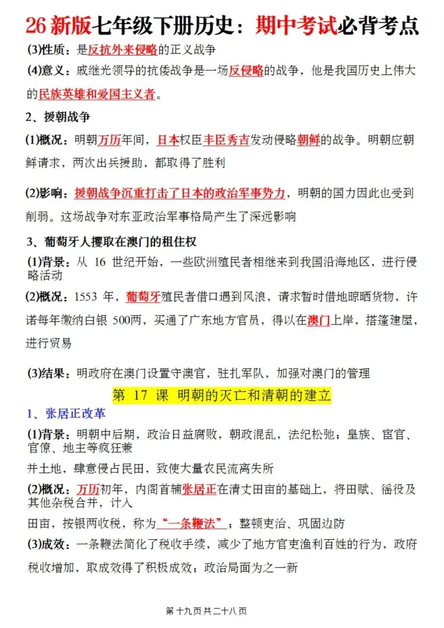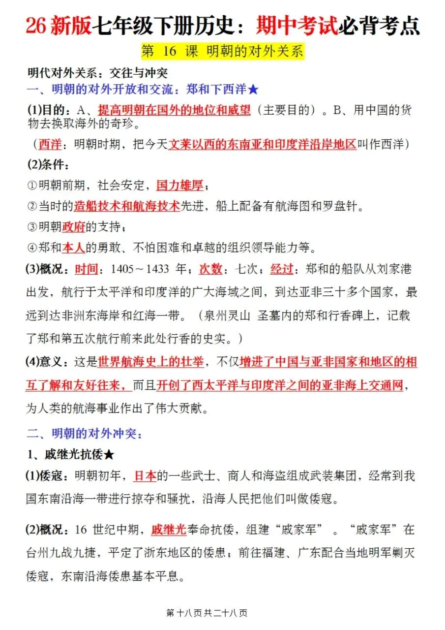 帮我写作,帮我如何利用老师整理好2026年最新教材七下历史期中复习必考知识点。很多同学历史复习没有方向,知识点杂乱抓不住重点,刷题费力还没效果,白白浪费宝贵的备考时间。