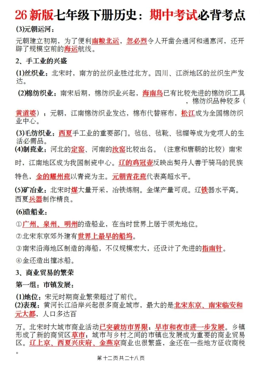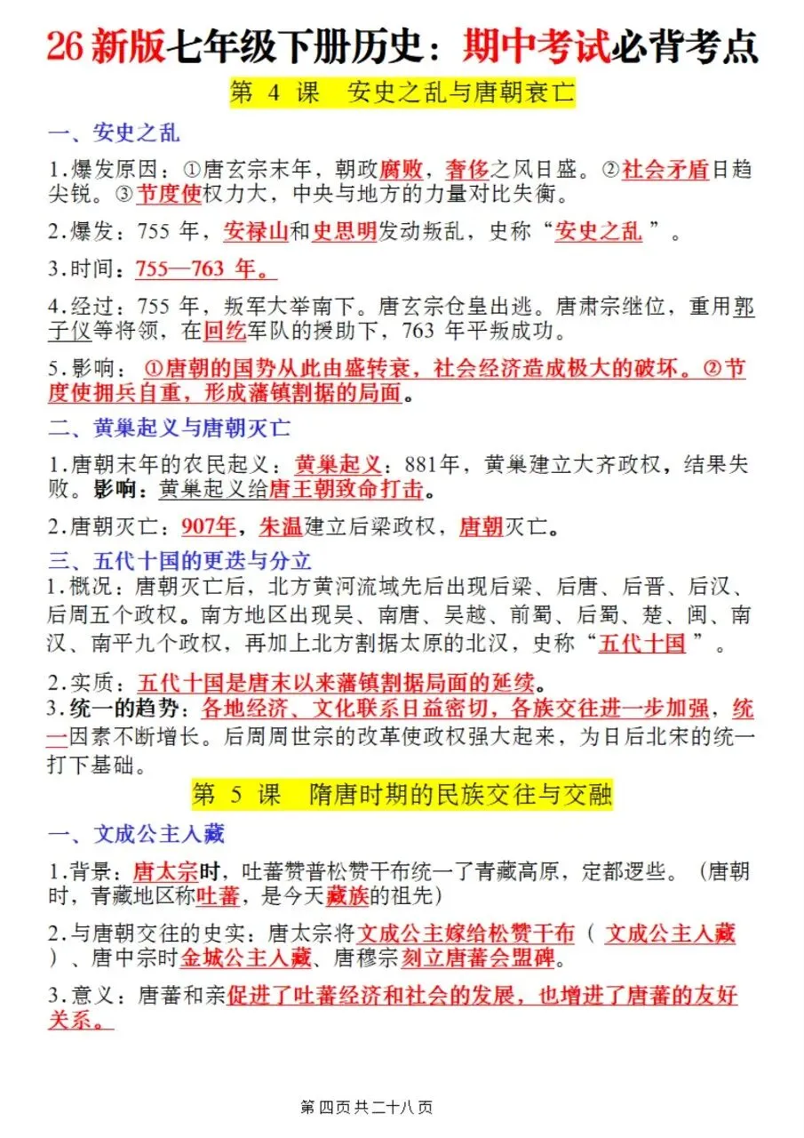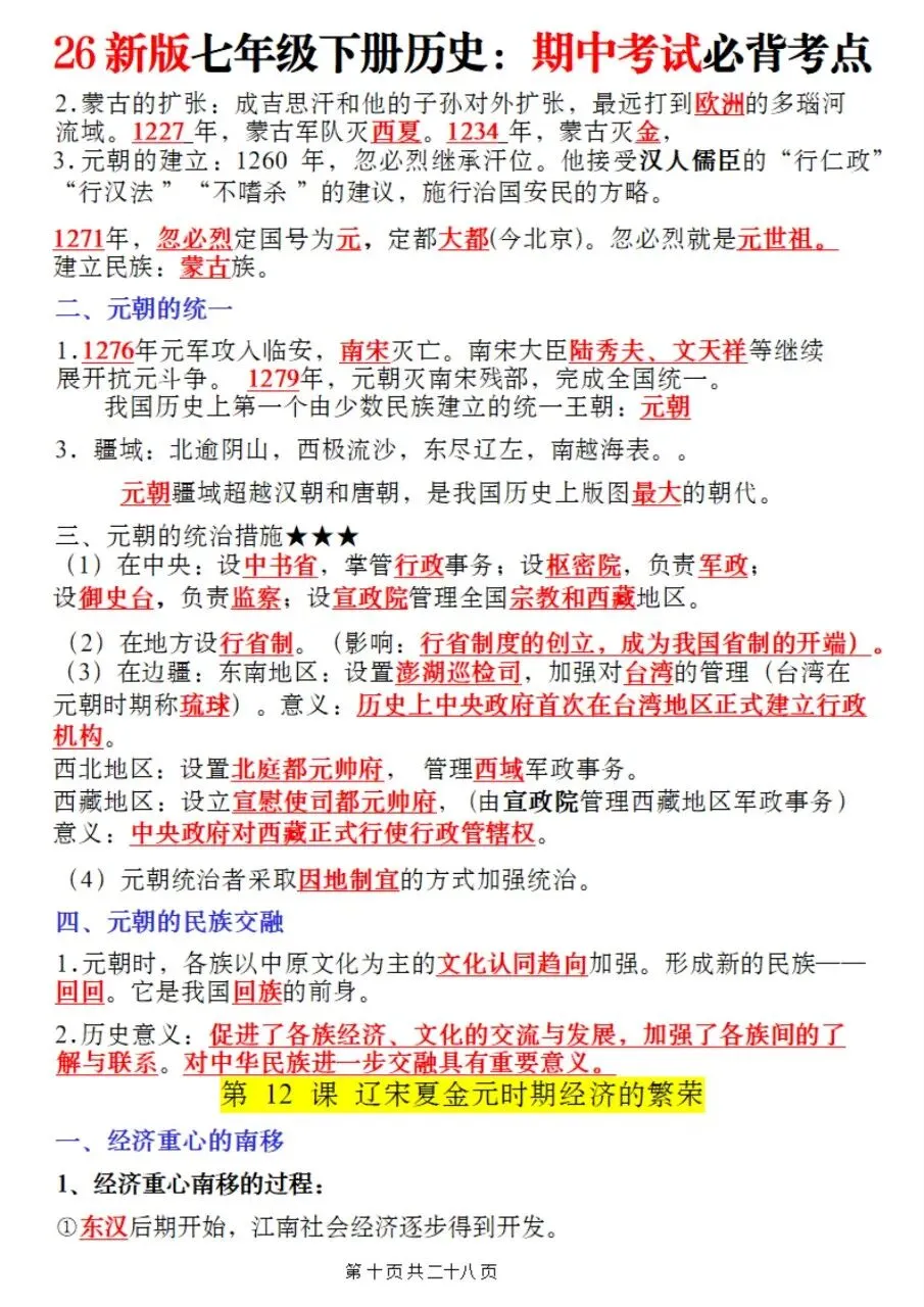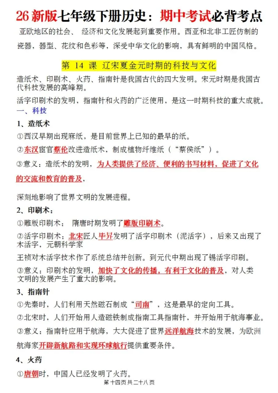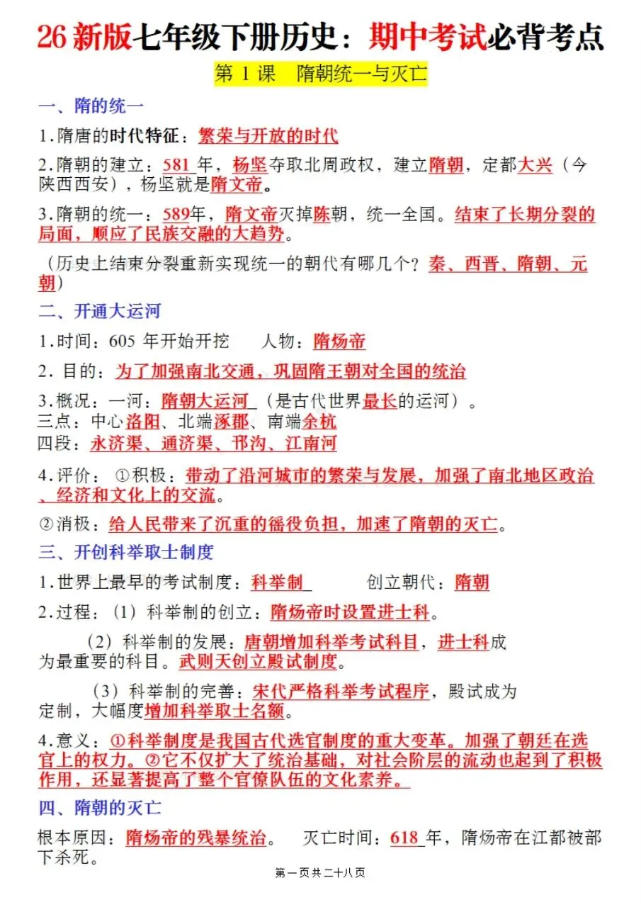 帮我写作,帮我如何利用老师整理好2026年最新教材七下历史期中复习必考知识点。很多同学历史复习没有方向,知识点杂乱抓不住重点,刷题费力还没效果,白白浪费宝贵的备考时间。