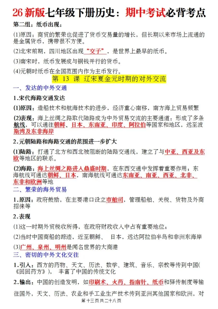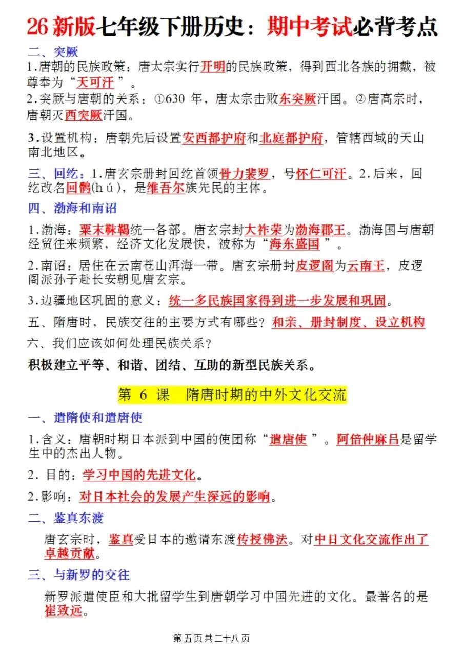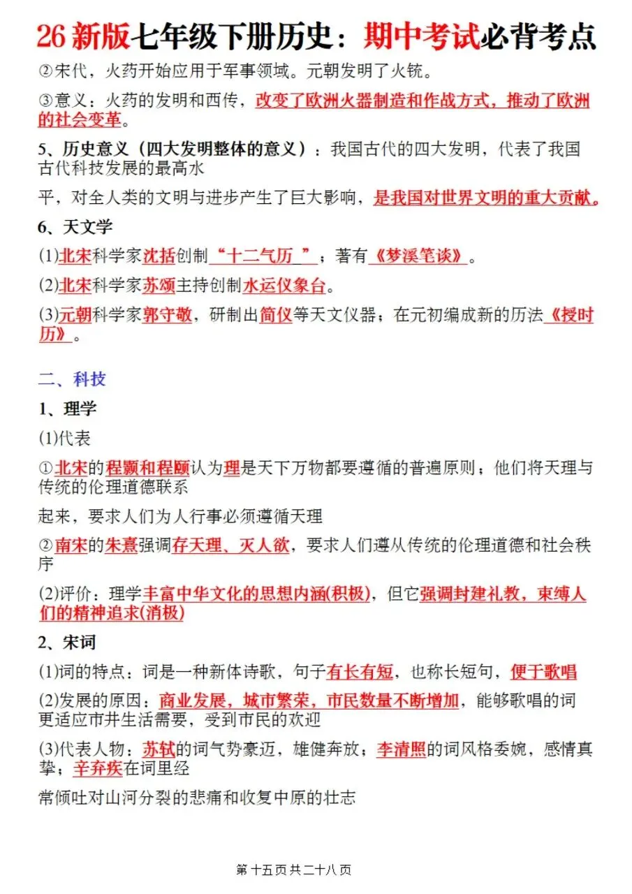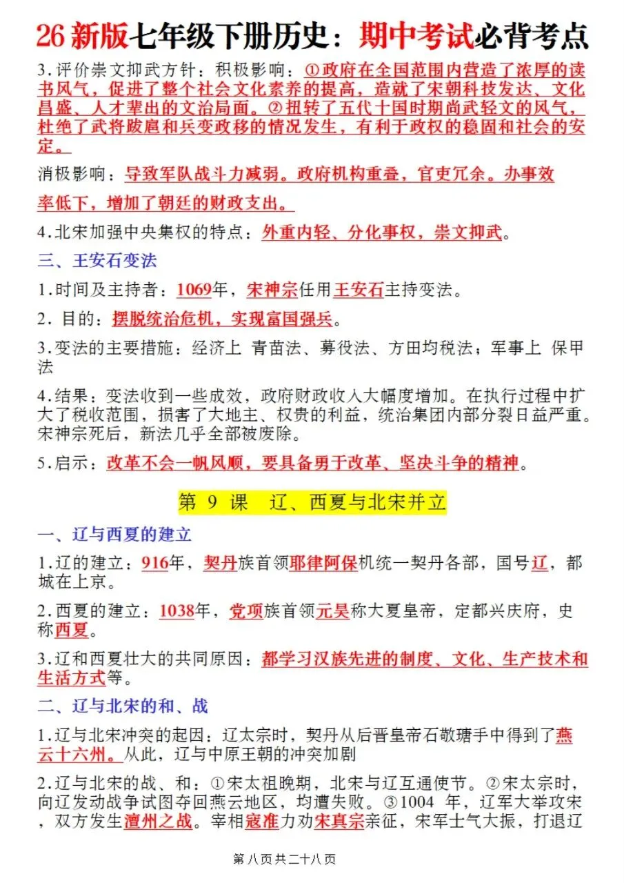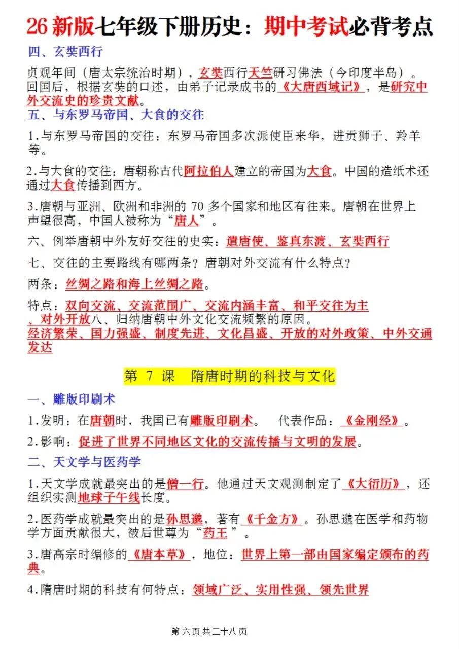 帮我写作,帮我如何利用老师整理好2026年最新教材七下历史期中复习必考知识点。很多同学历史复习没有方向,知识点杂乱抓不住重点,刷题费力还没效果,白白浪费宝贵的备考时间。