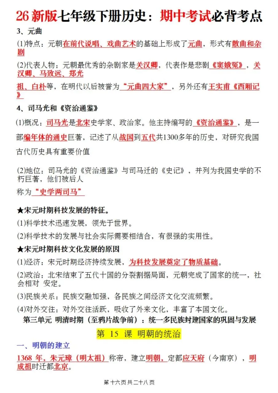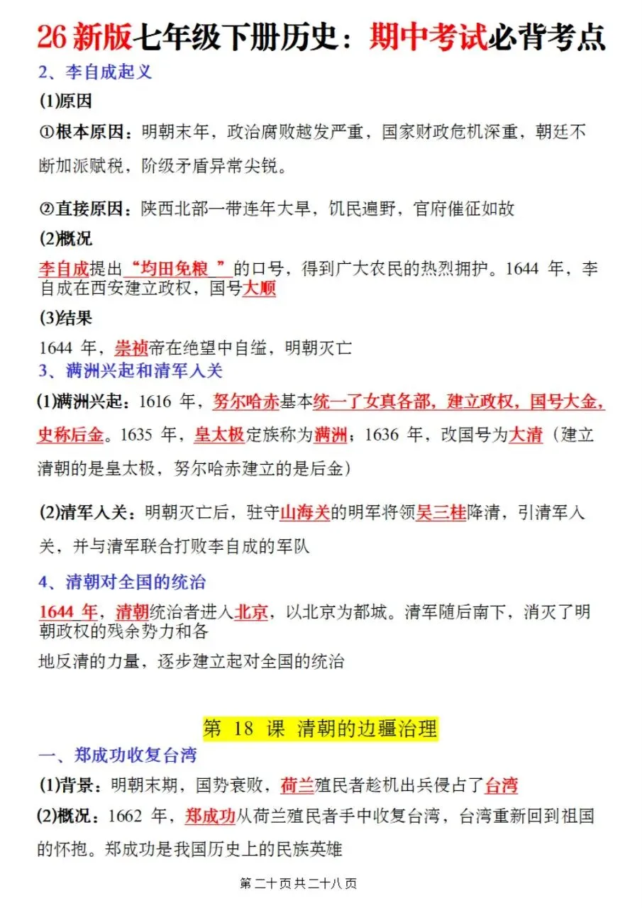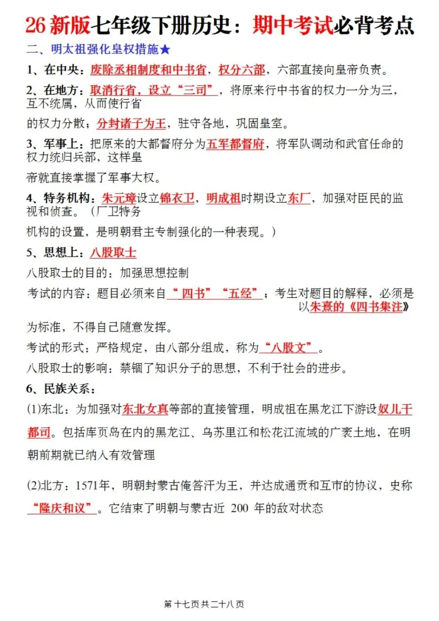 高效备考|2026七下历史期中核心考点速记
