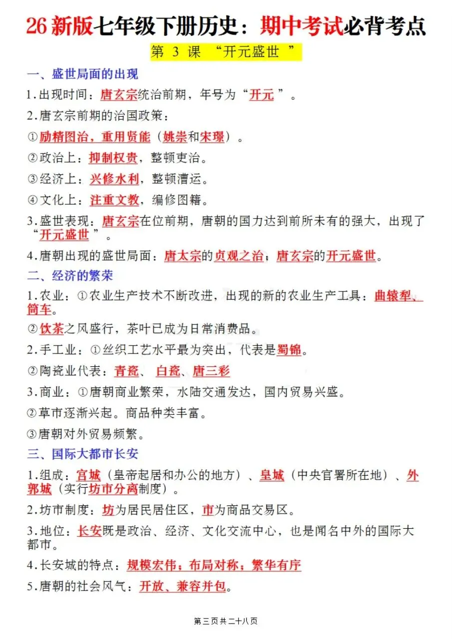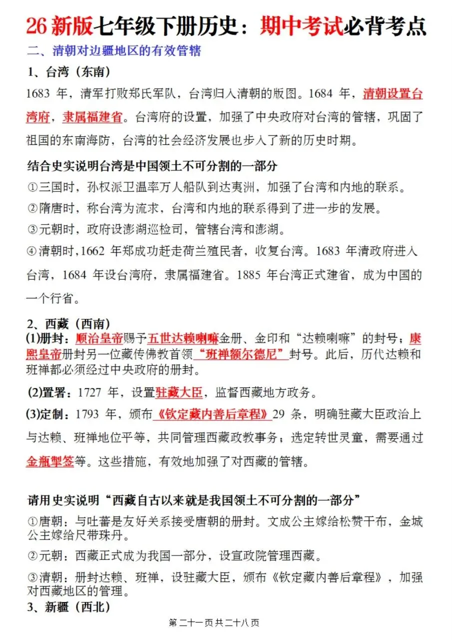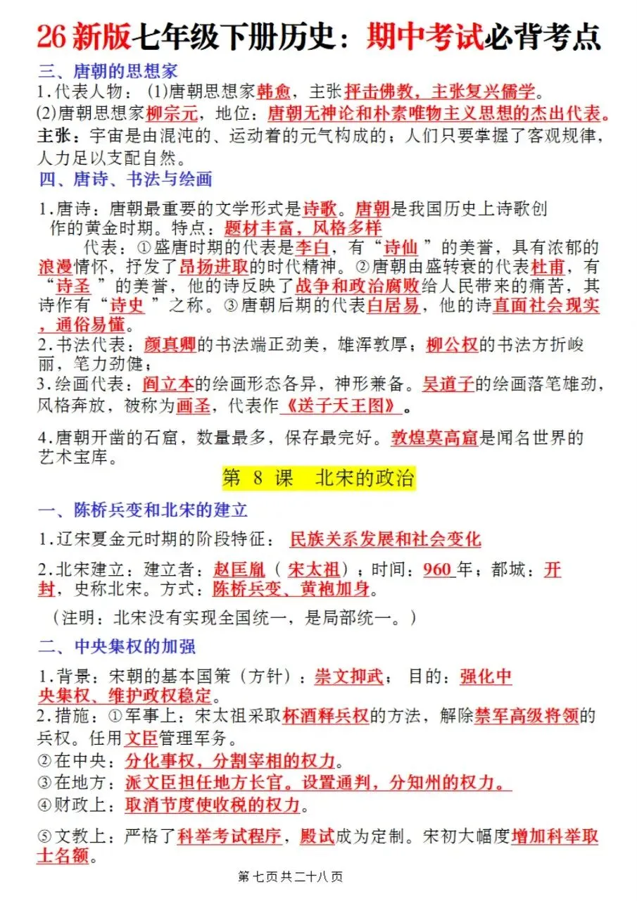 高效备考|2026七下历史期中核心考点速记