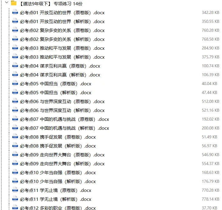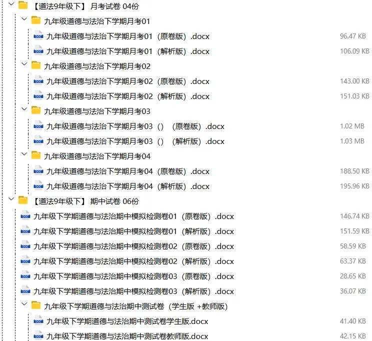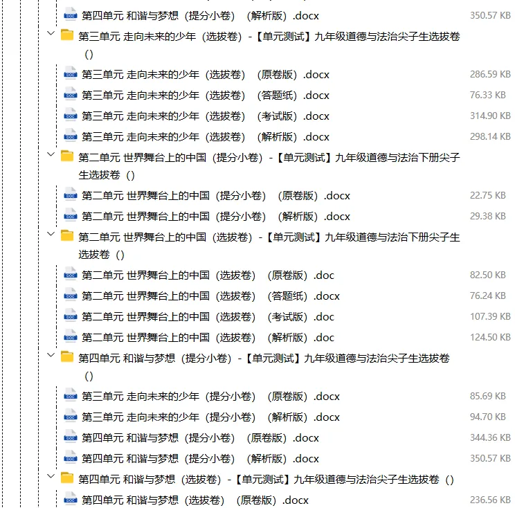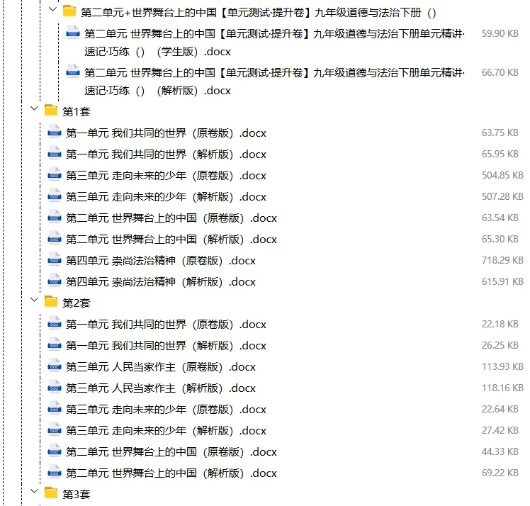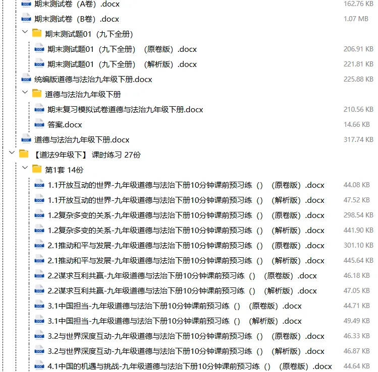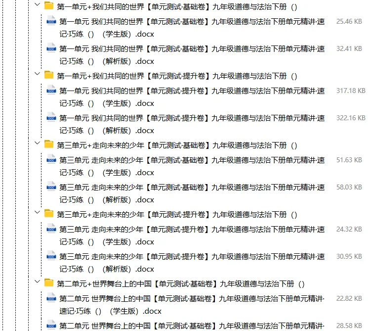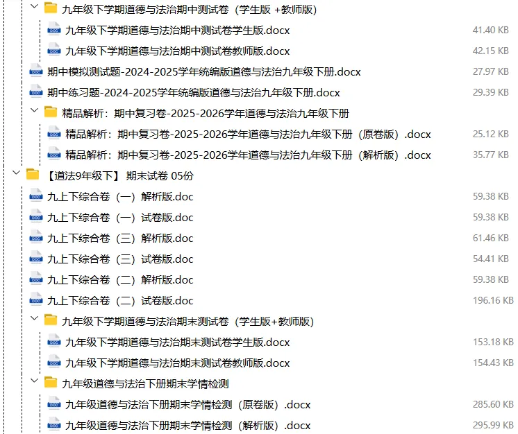 【电子版】2026春人教版初中九年级道德与法治下册 (课时练习+单元测试+月考试卷+期中试卷+期末试卷)全套下载 可编辑打印注意:下拉到文章底部有二维码的地方下载01资料目录下拉到文章底部有二维码的地方下载02资料阅览 版面有限 仅展示部分内容下载方法长按二维轻松下载电脑下载,方便保存复制网址去电脑打开:https://jazpan.com/view/2449709更多资源,关注以下公众号教师·学生图文来自网络,版权归原作者,如有不妥,告知即删点击阅读原文下载1-12年级全部资