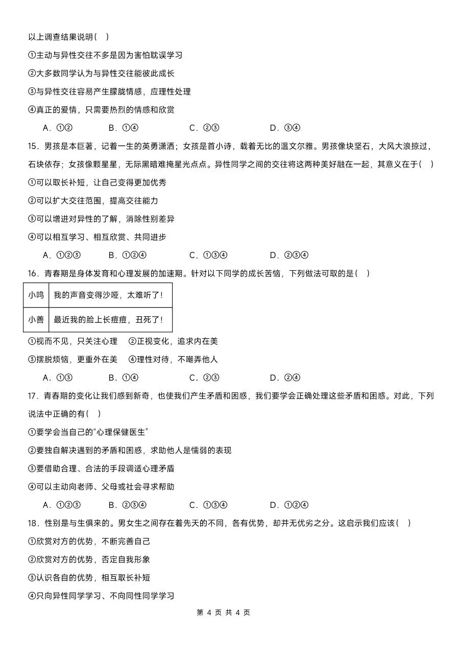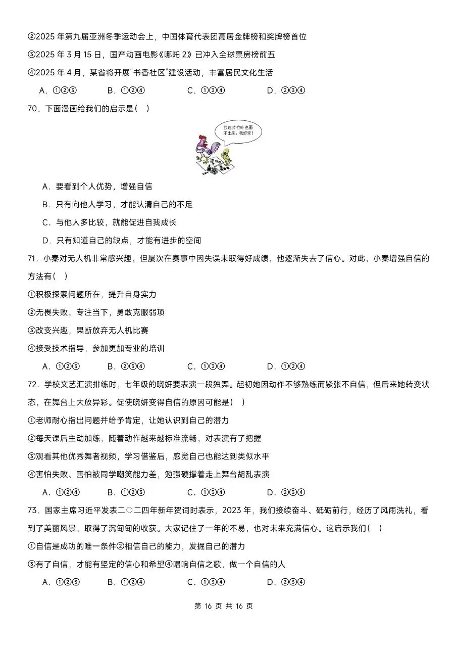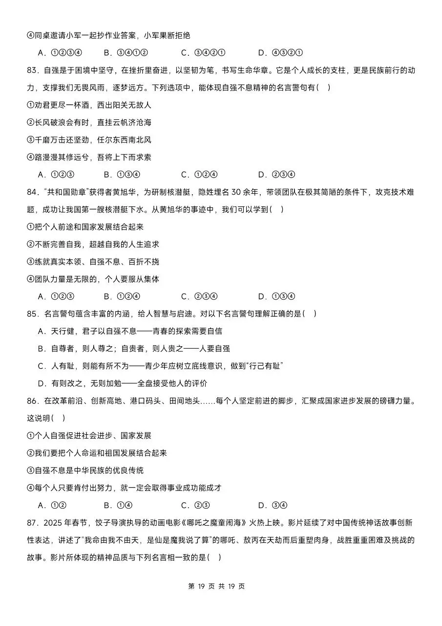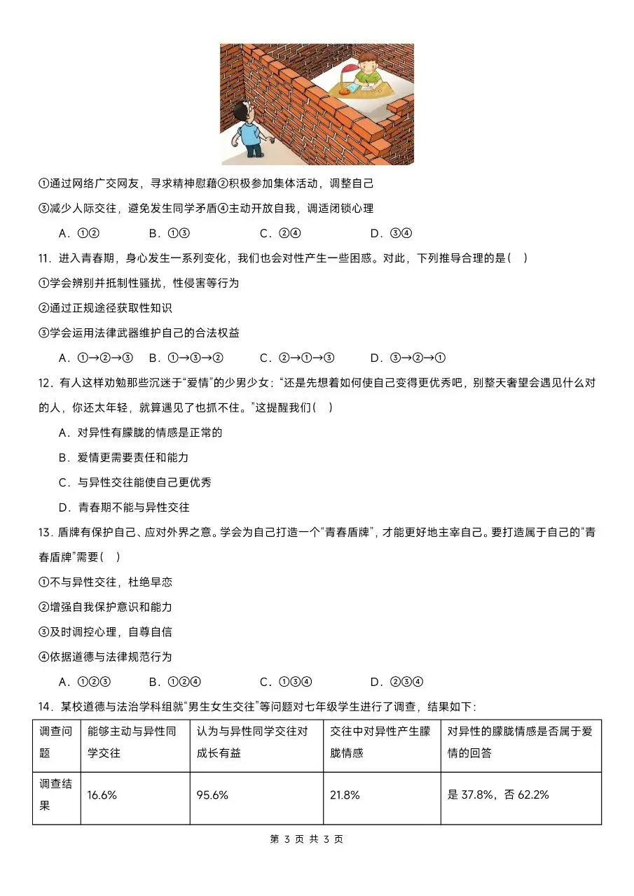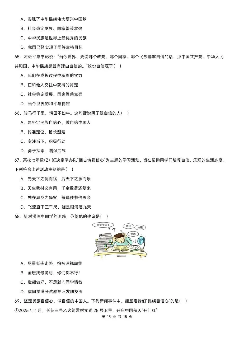 这份精选100道选择题专练,贴合2026年新版教材考点,紧扣七下道法期中核心内容,覆盖高频考点、易错题和高频陷阱题。题型全面针对性强,完全适配期中考察方向。