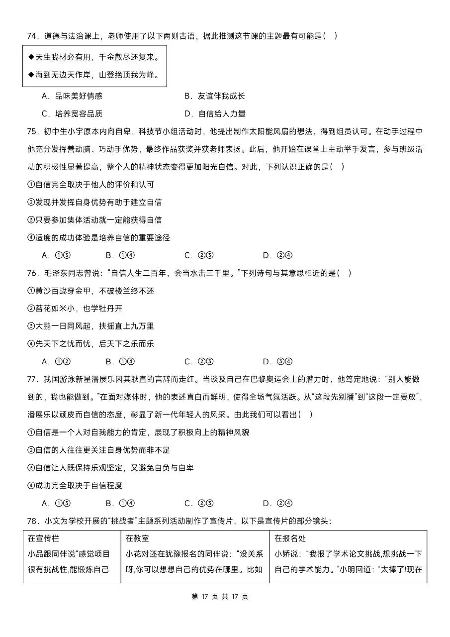 吃透选择题,道法期中稳高分