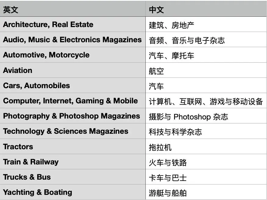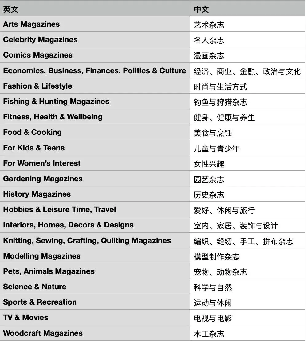 为了方便大家快速找到想要的类别,网站还有清晰的中英文类别对照表,不用再为看不懂分类发愁,精准定位自己需要的期刊类型。