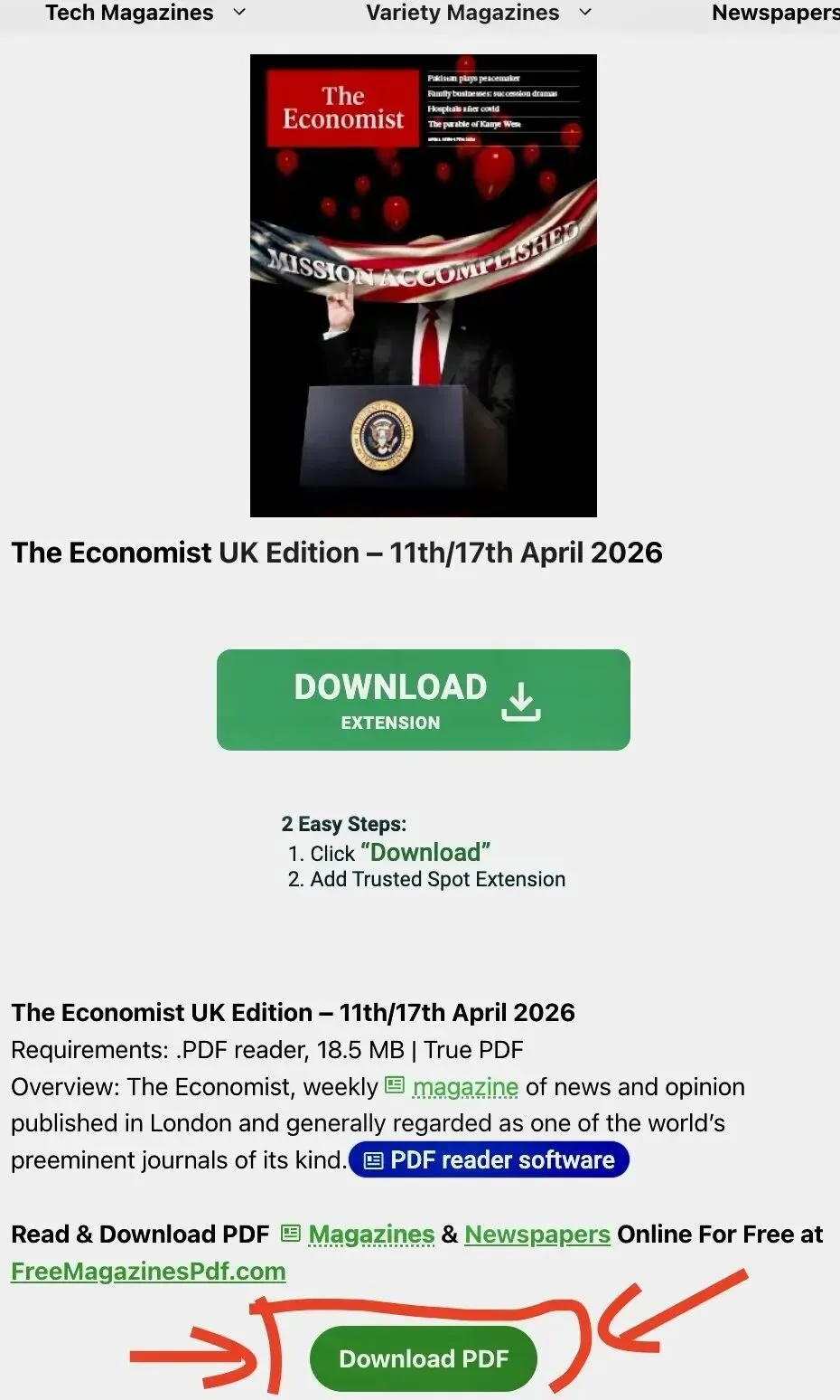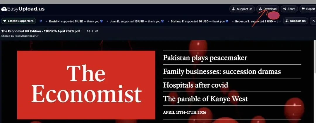 4. 完成下载:点击后会进入杂志在线阅读界面,找到页面右上角的download按钮,直接点击就能把PDF版外刊保存到手机或电脑,随时都能拿出来精读学习。