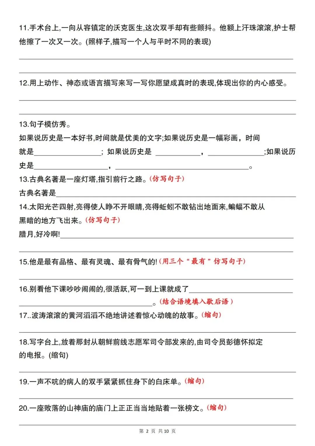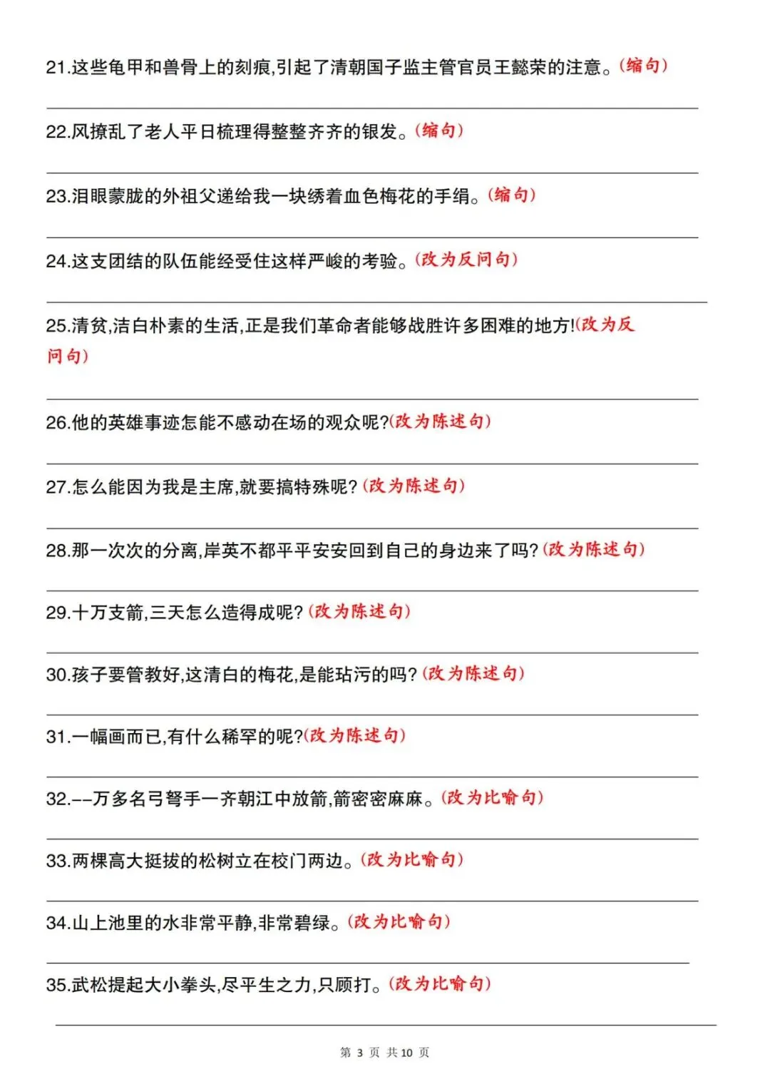 五年级家长注意!缩句、扩句、反问句与陈述句互换等句型转换是语文高频考点,孩子总出错?别愁!我们整理了 100 道句型专项训练,精准覆盖知识点。电子版能打印,还附详细答案,让孩子集中突破,提升语文能力!