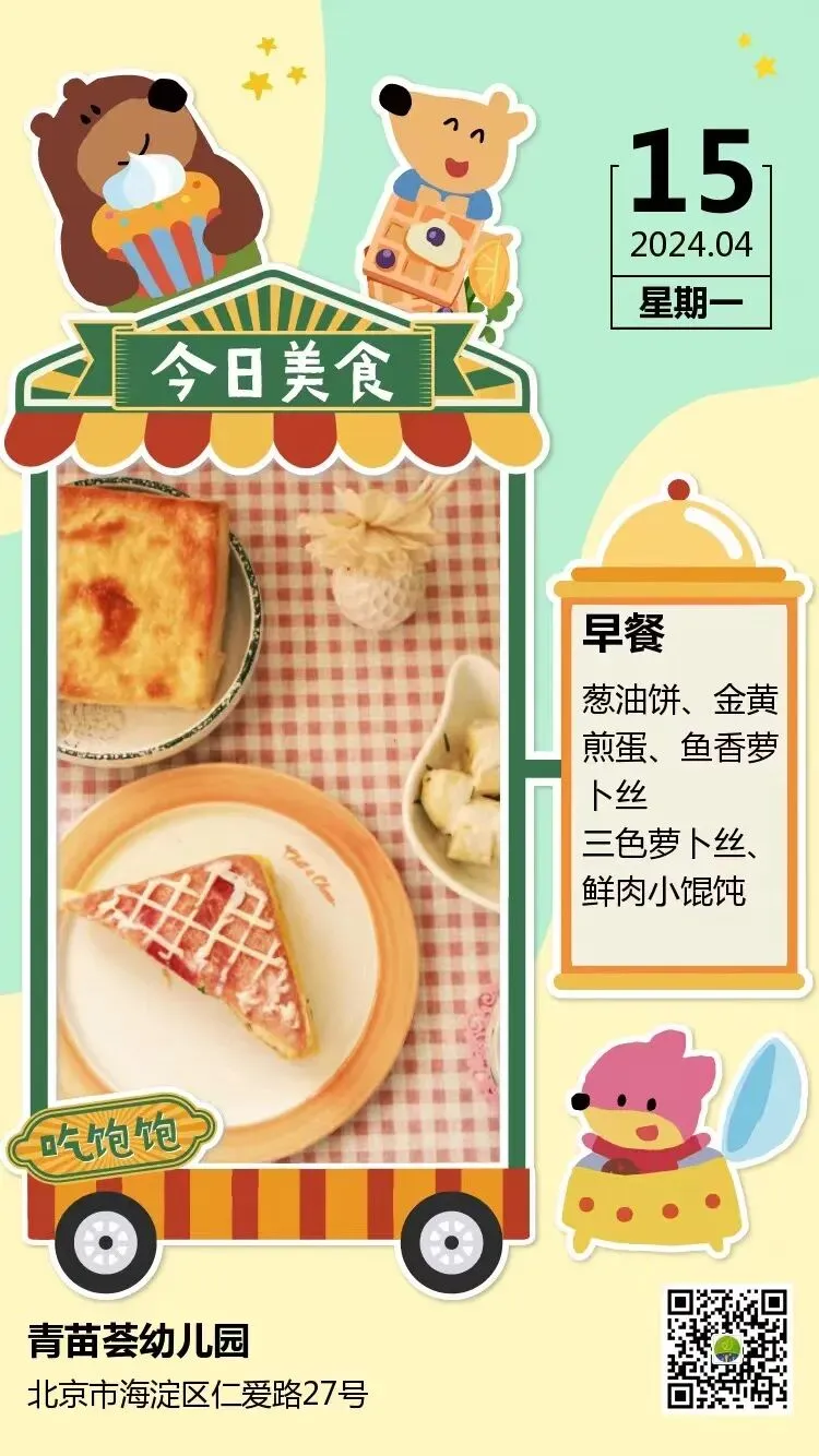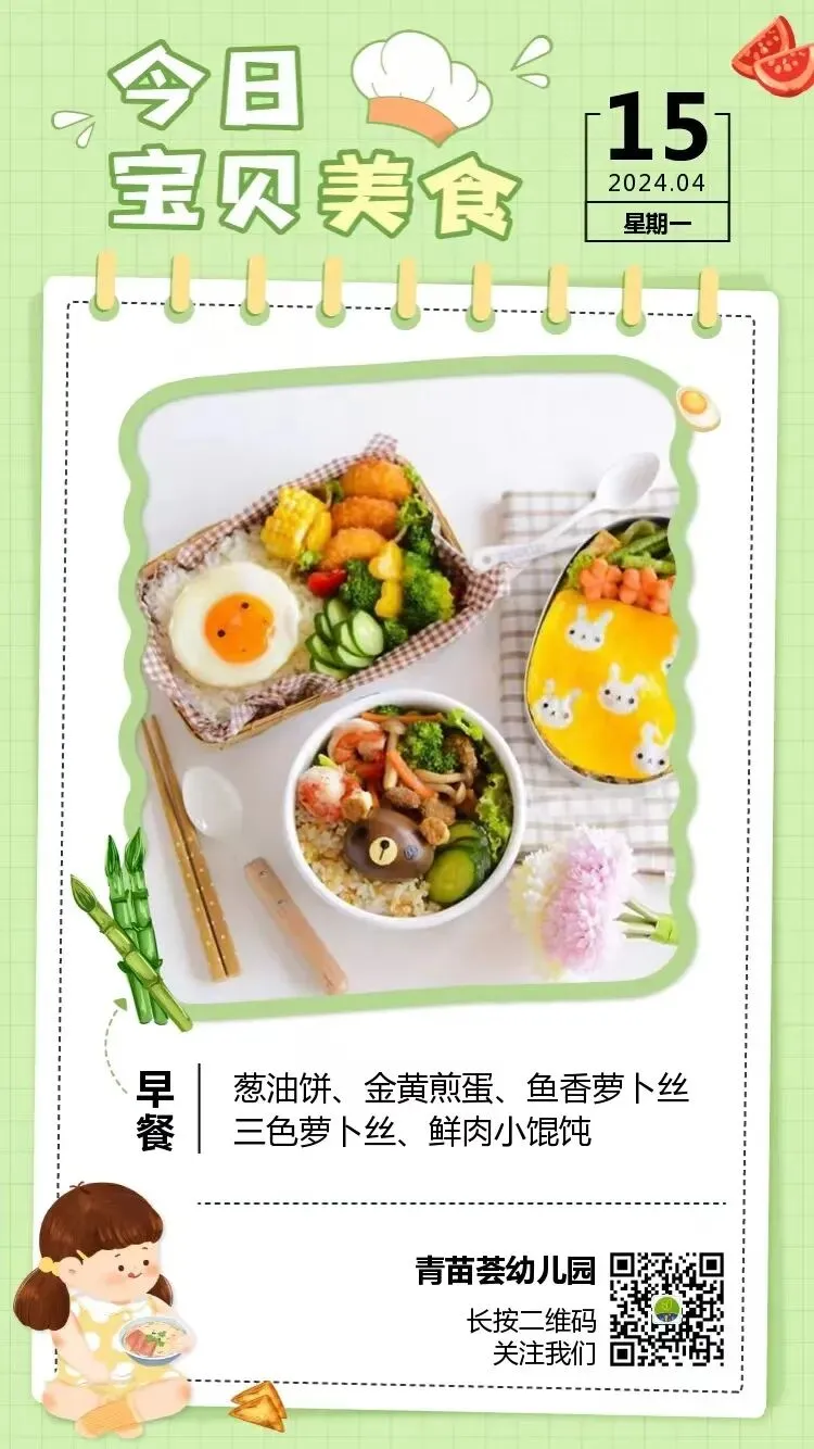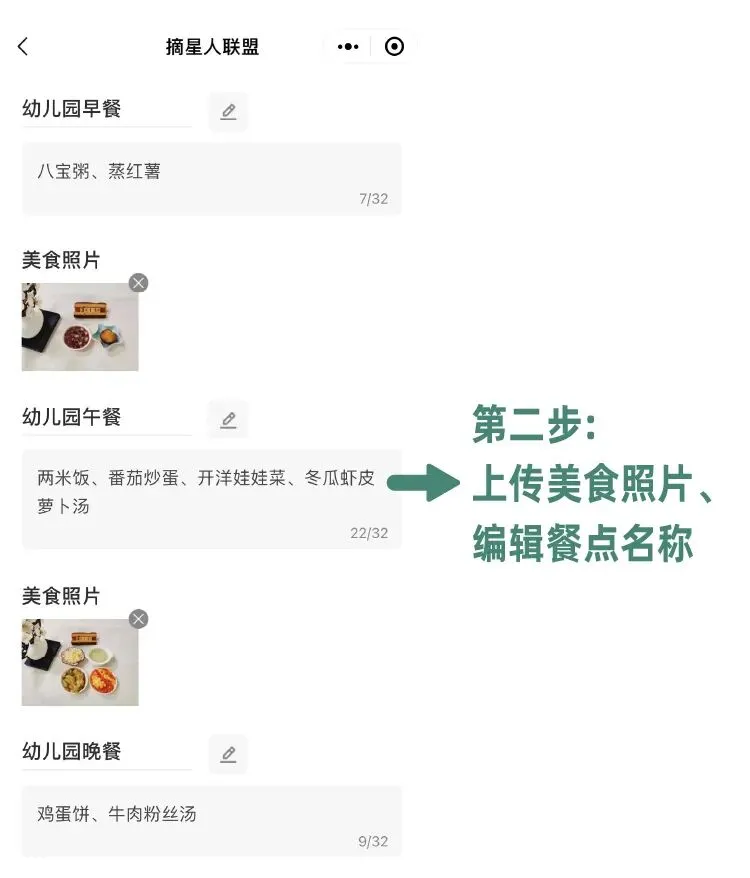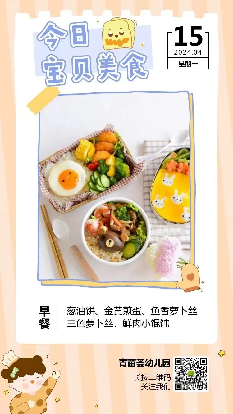 同时随着时间的动线,早餐、午餐、晚餐,各发一张,和家长每一天都可以通过美食分享进行多次互动,让家园关系更加紧密。