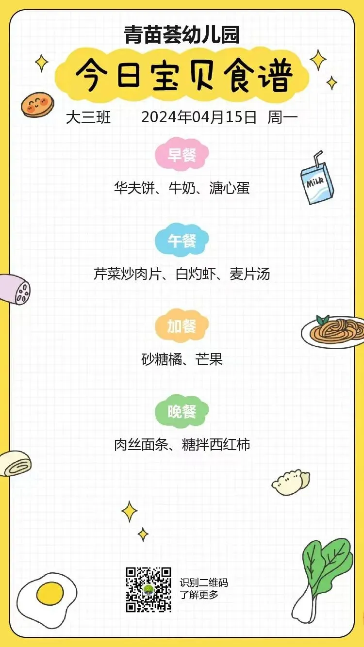 超大单图展示,可以让家长看清楚幼儿园的每一餐。