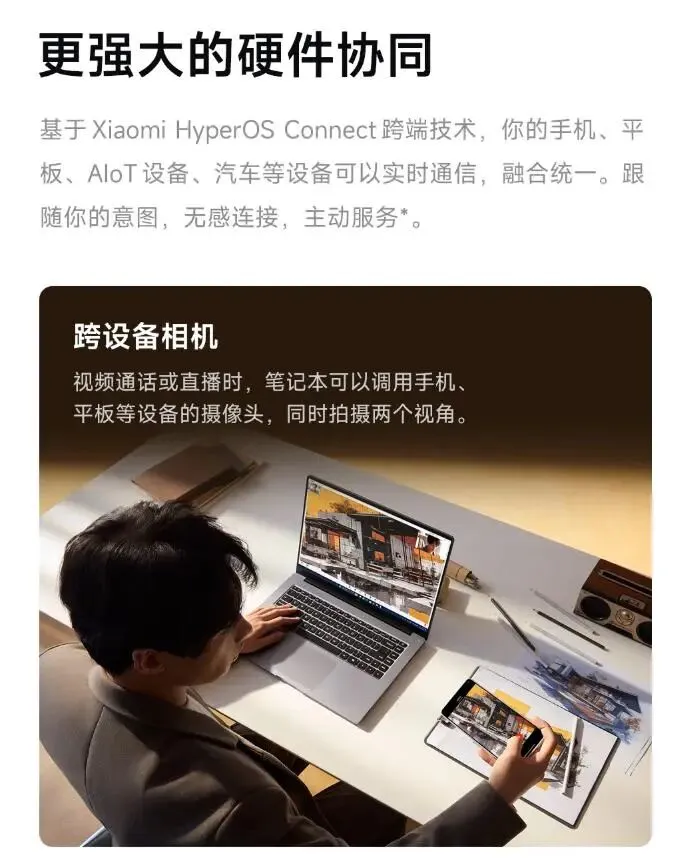 如果你用的是小米手机,那这台电脑对你来说就是“如虎添翼”。它内置了小米澎湃智联。你的手机一靠近,电脑上就能直接操作手机APP;手机上复制一段文字,电脑上直接粘贴;甚至你用电脑开视频会议,可以调用手机的摄像头,画面更高清。这种无缝流转的感觉,一旦用习惯了,就真的回不去了。它不再是一台冷冰冰的机器,而是你数字生活的智能中心。