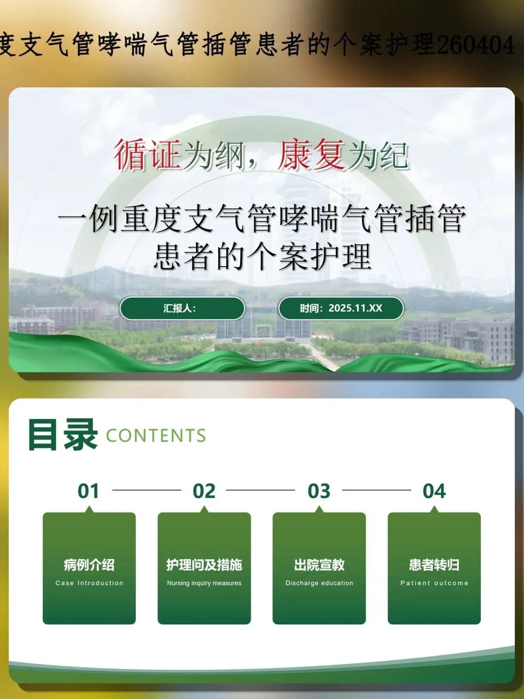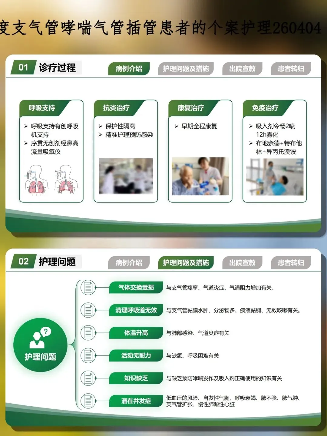 今天分享的这套PPT,就是一份基于循证医学的“重度支气管哮喘气管插管个案护理”实录。从振动筛孔雾化的药物选择,到48小时内的早期康复介入,再到脱机后的居家管理,整套方案逻辑严密,拿来就能用。