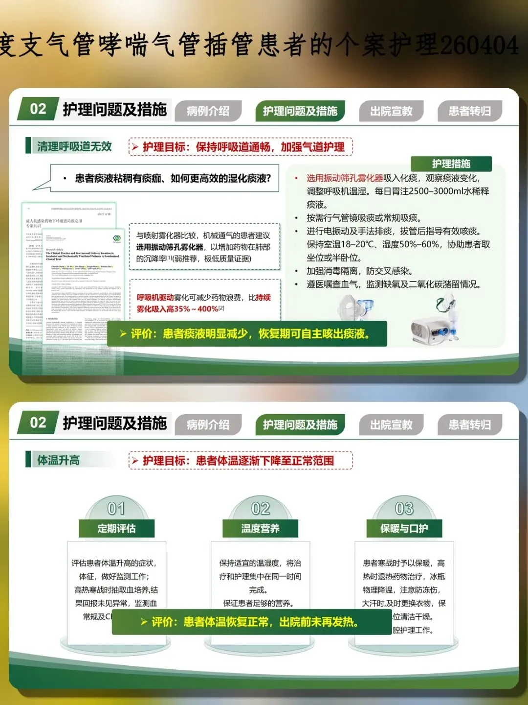 - 效果反馈: 评价显示,这套组合拳打下来,患者痰液明显减少,拔管后甚至能自主咳出痰液,这就为脱机打下了坚实基础。