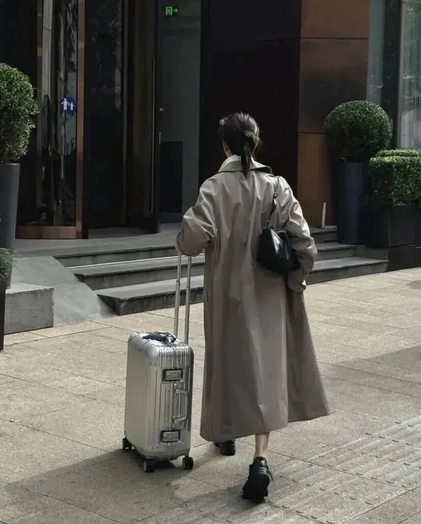 箱子一拉,包一背,风衣下摆一甩,立刻有那种“我很忙但我不狼狈”的职场气场。