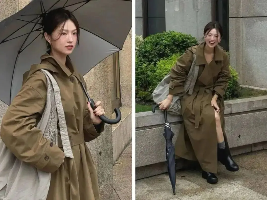 风衣建议选中长、偏挺的面料,别太软塌,不然走两步就像睡衣外罩。