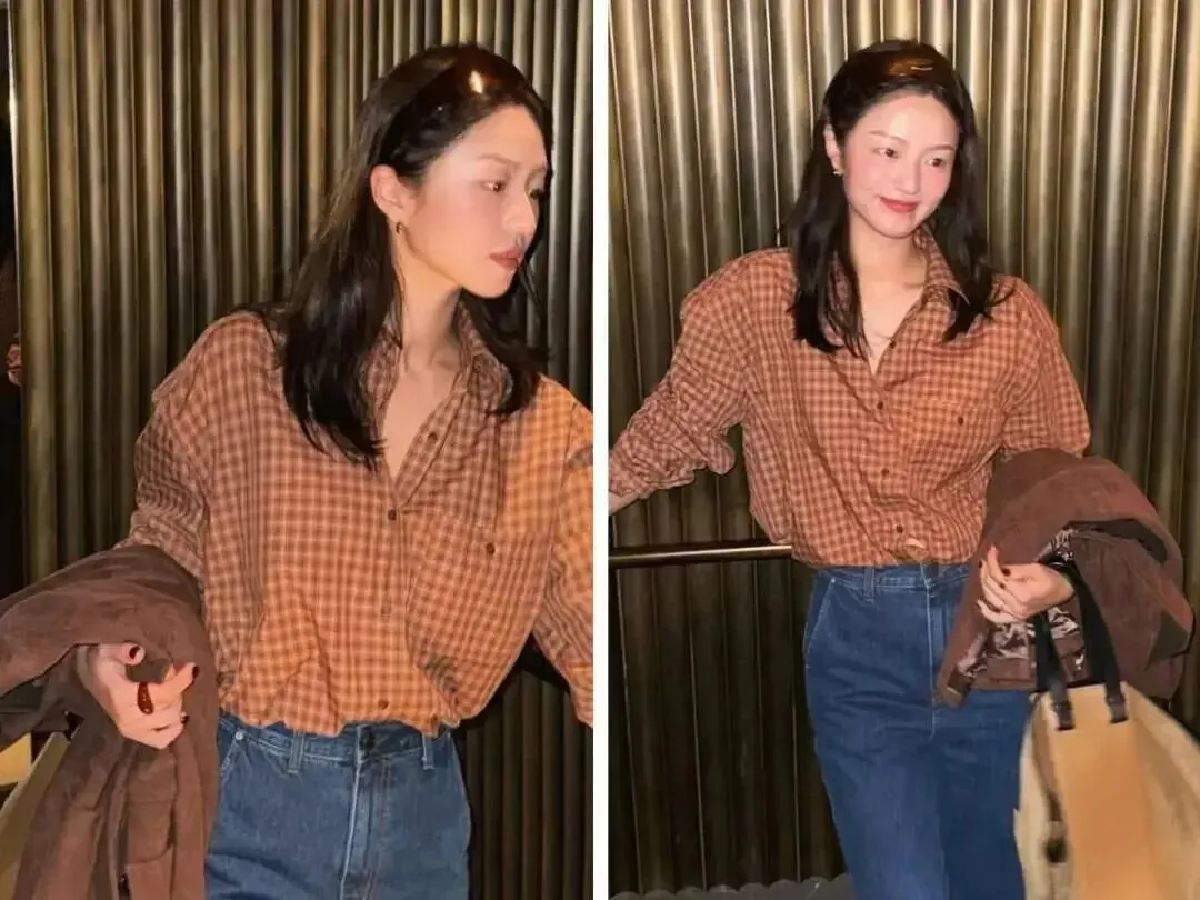 格子自带烟火气,配牛仔就很“下班去吃火锅也合理”。