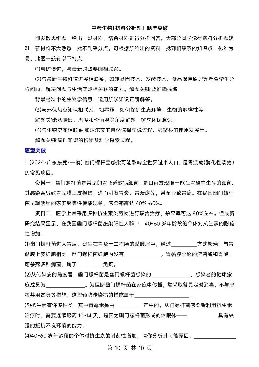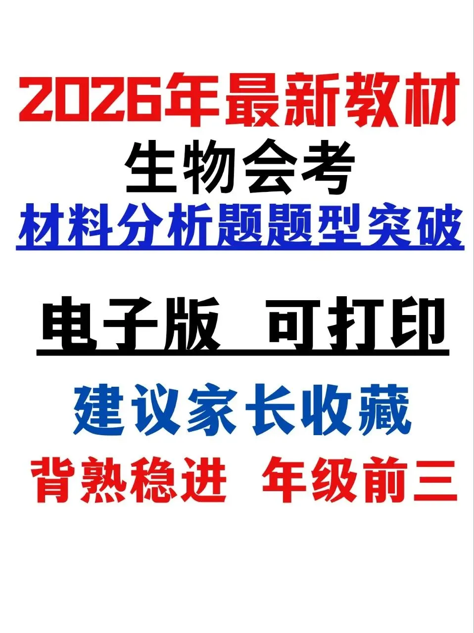 帮我写作,帮我如何利用老师整理好2026年最新教材生物会考材料分析题题型突破资料。距离生物会考越来越近,材料分析题作为高频重难点,题型灵活、考点细碎,很多同学容易丢分。