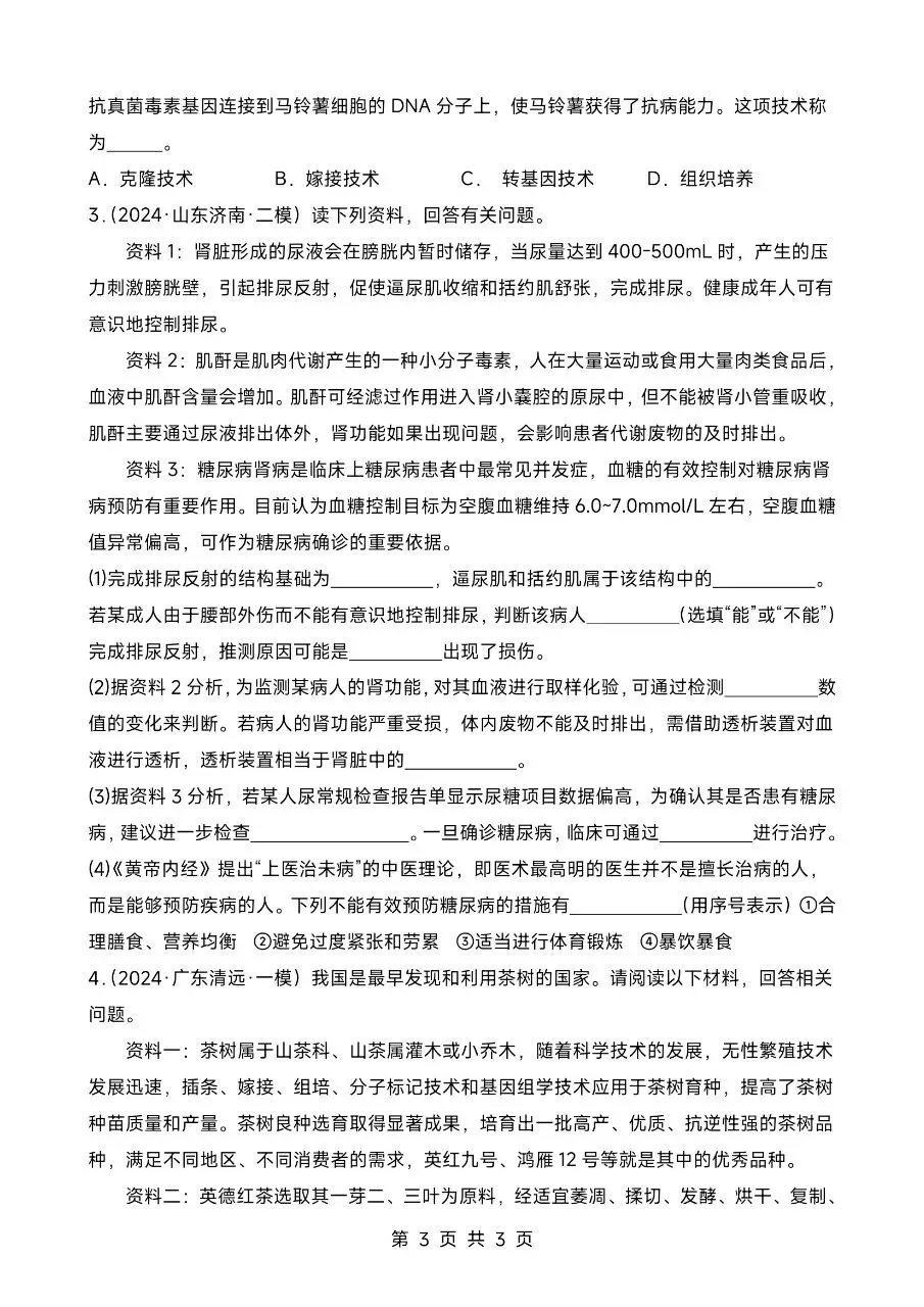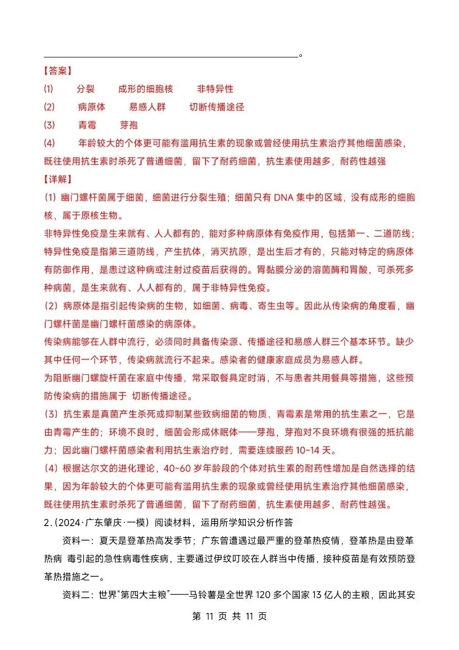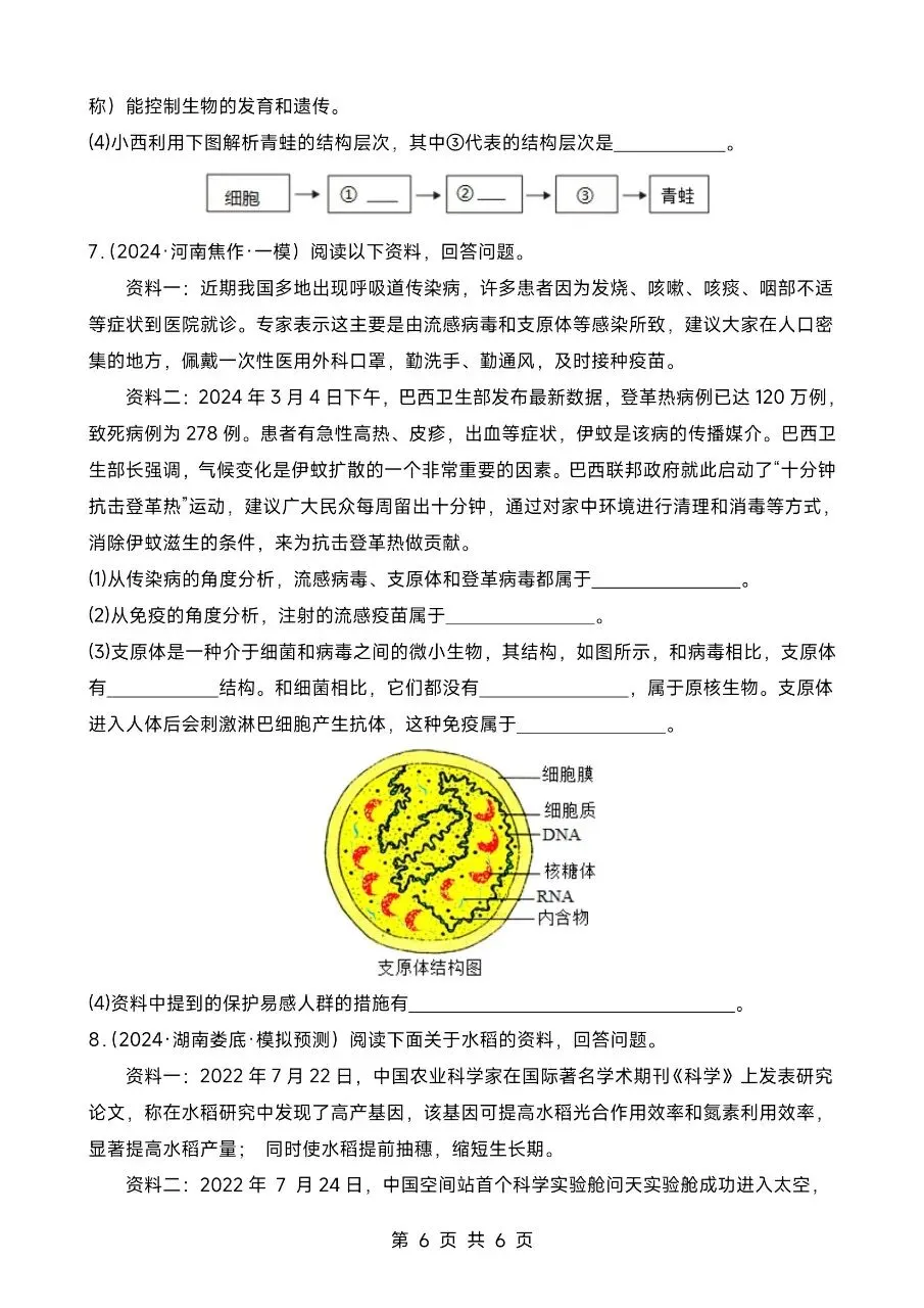 生物会考材料分析题专项突破,高效冲刺稳高分