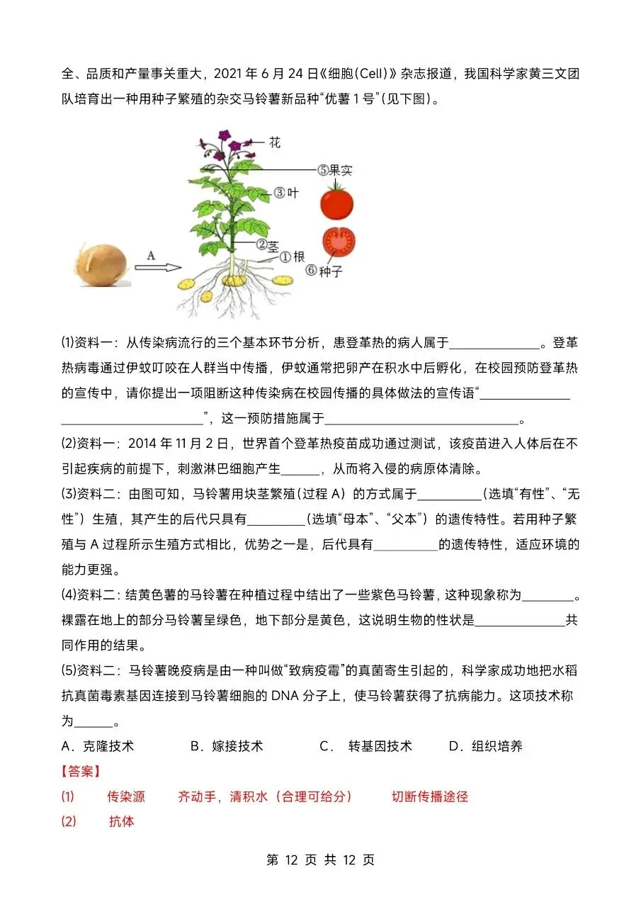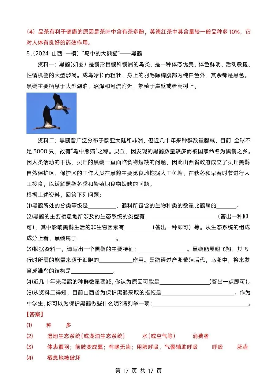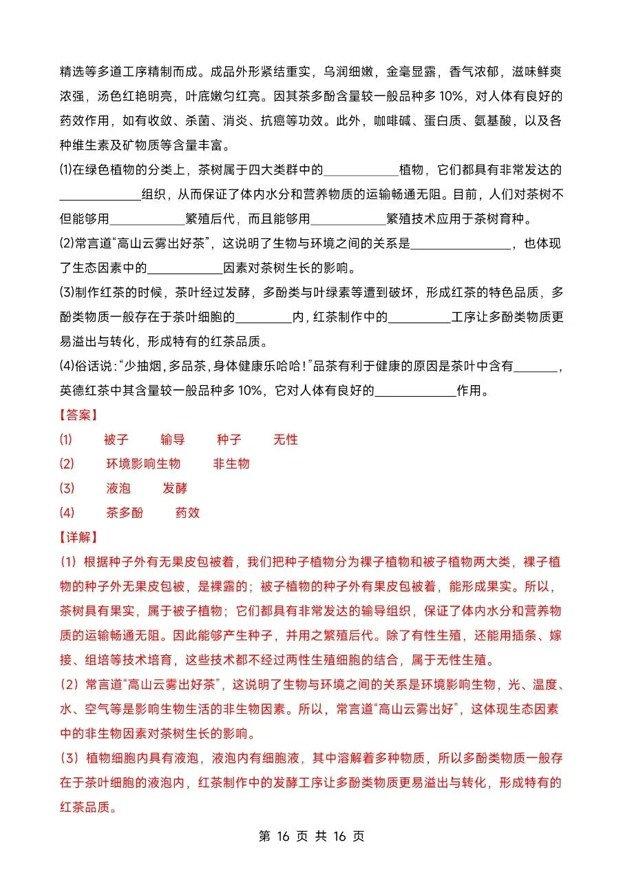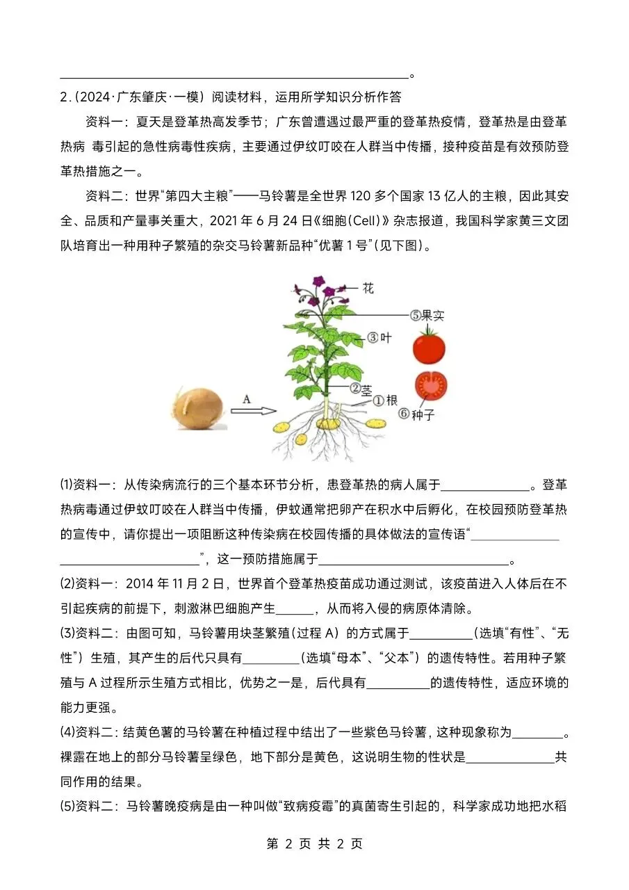 生物会考材料分析题专项突破,高效冲刺稳高分