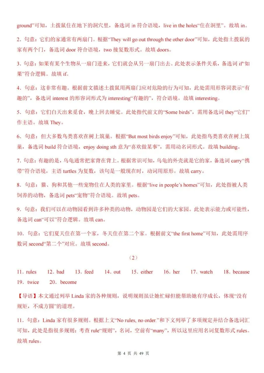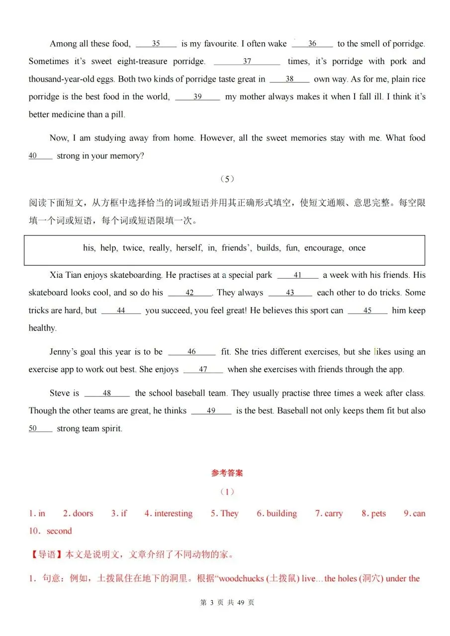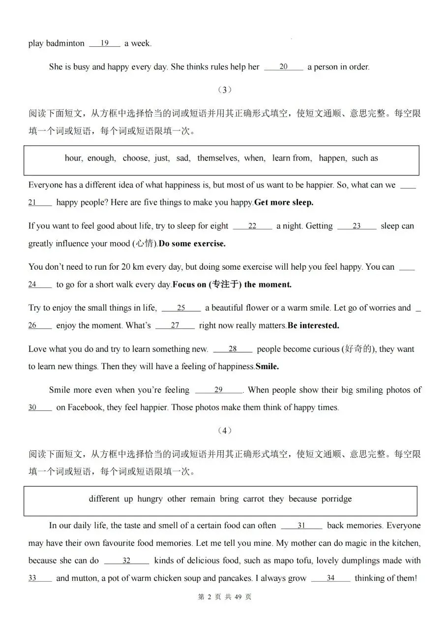 七下英语期中|短文选词填空专项高效复习