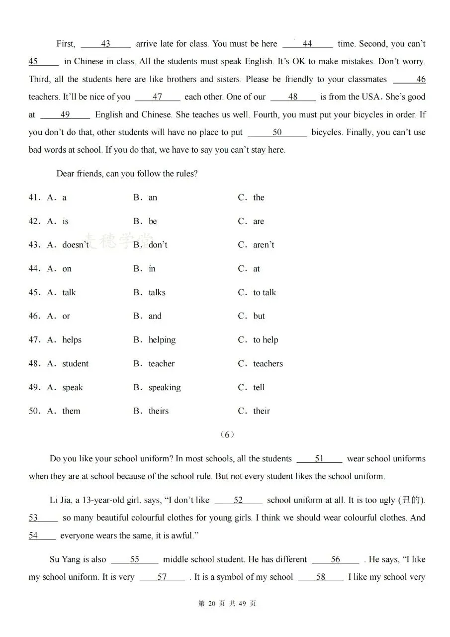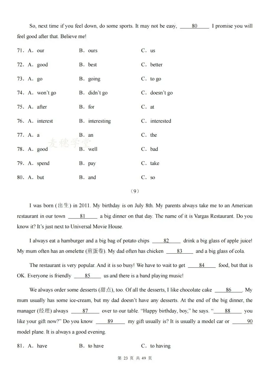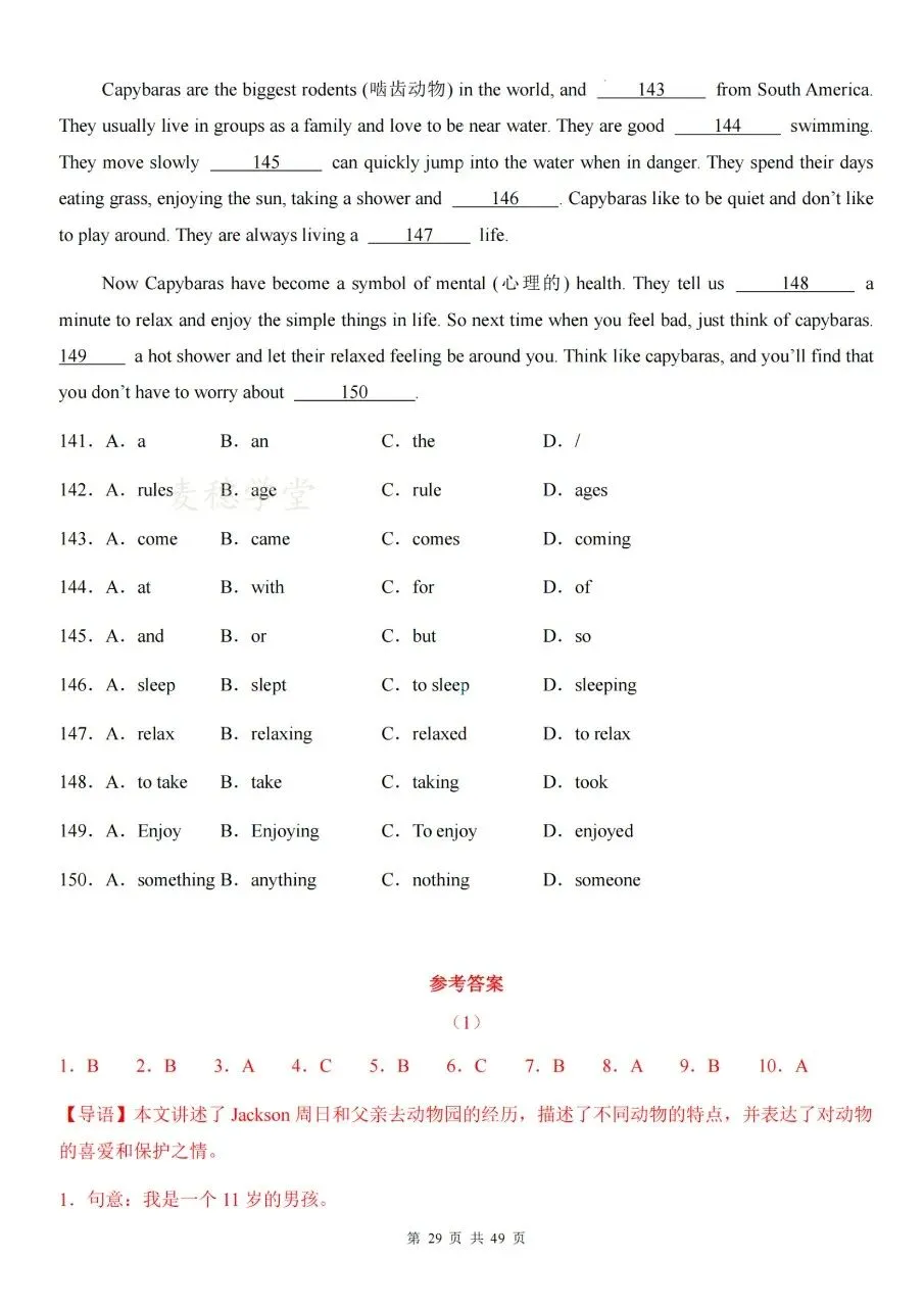 七下英语期中|短文选词填空专项高效复习