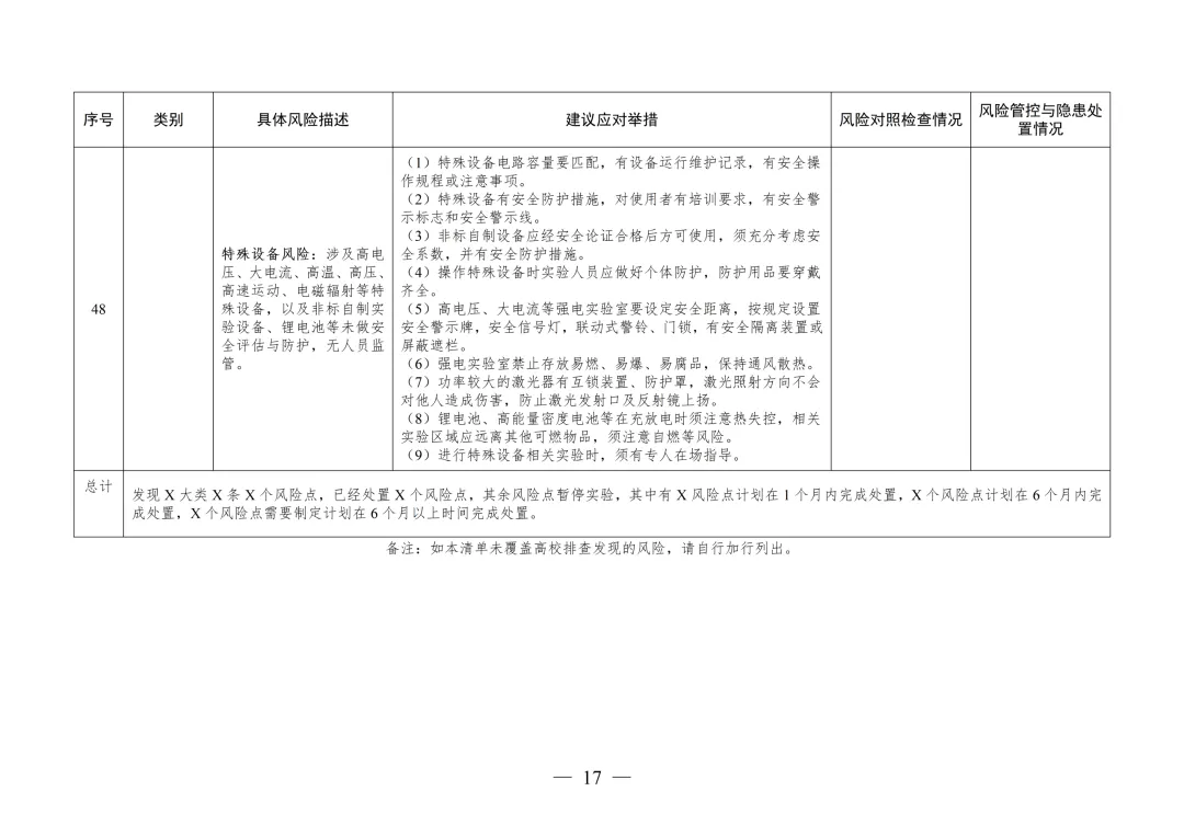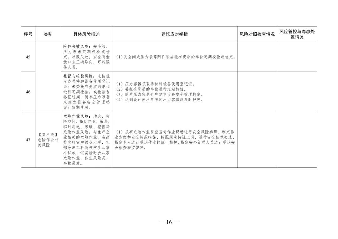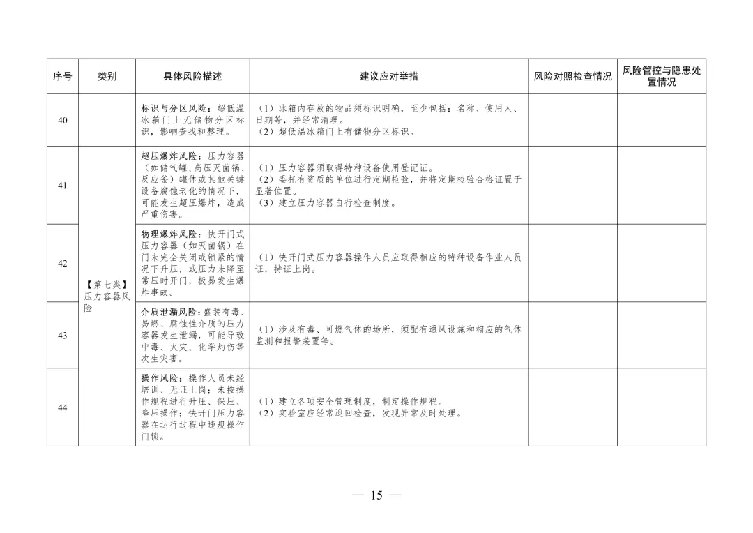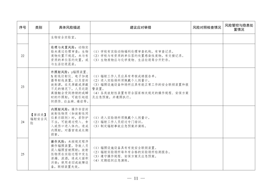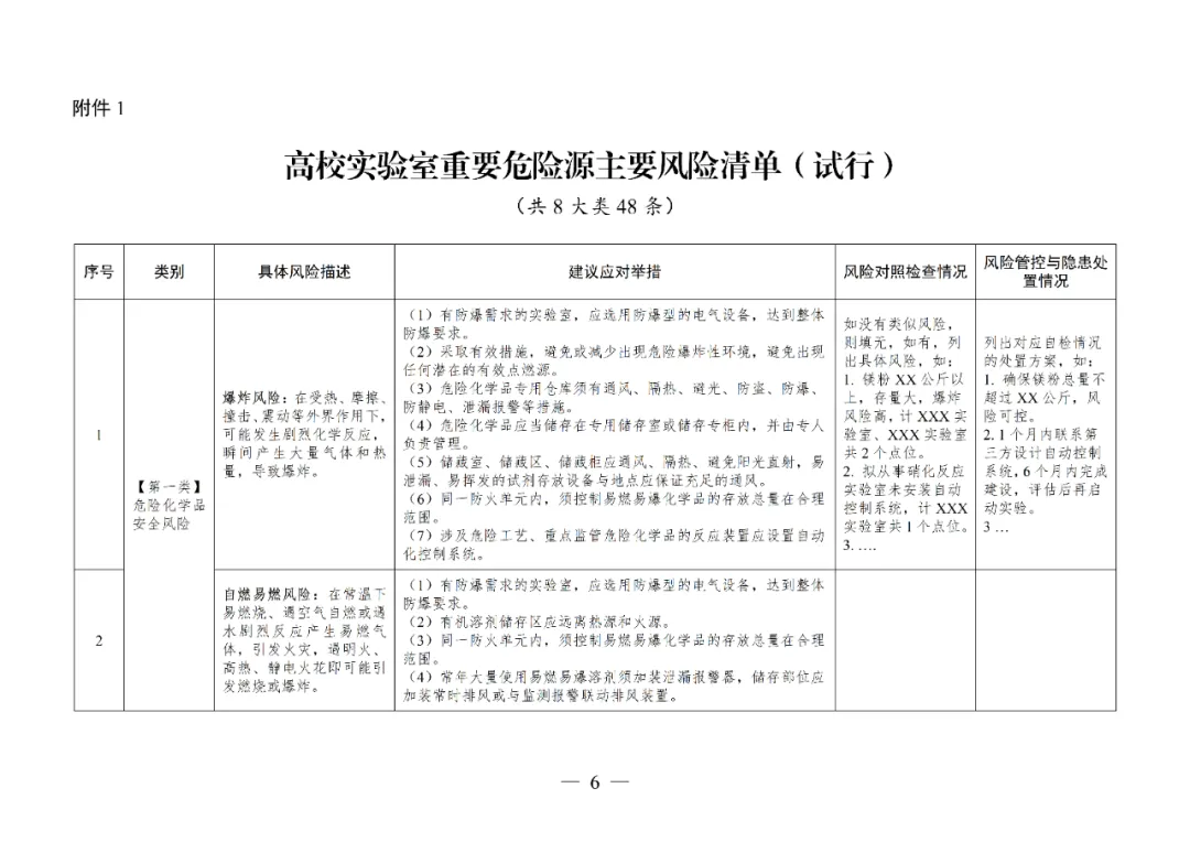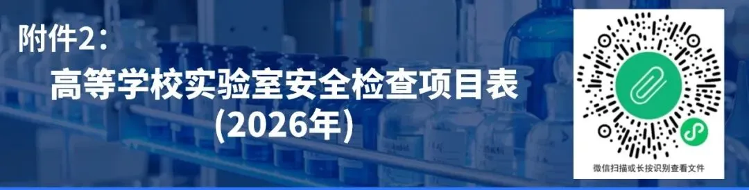 【可下载源文件】高校实验室重要危险源主要风险清单(试行)— 往期回顾 —教育部办公厅关于做好2026年度高等学校实验室安全工作的通知(教科信厅函〔2026〕8号)2026.04.26新规速递|2026 版高校实验室安全检查项目表正式发布2026.04.23高校实验室安全隐患共性问题清单 - 12大类66项隐患自查2026.04.10