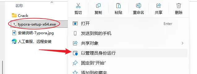 3.右键以管理员身份运行【typora-setup-x64.exe】安装程序。
