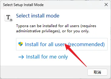 4.点击【Install for all users (recommended)】。