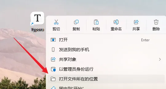 12.鼠标右击桌面【Typora】图标选择【打开文件所在的位置】。