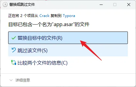 14.点击【替换目标中的文件】(若提示需要管理员权限,勾选“为所有...”,点击“继续”)
