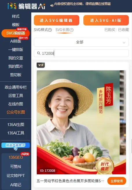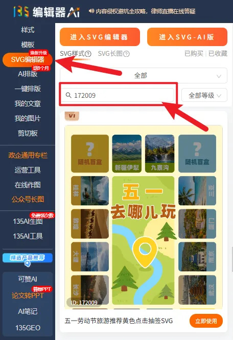 如何在135编辑器中搜索模板?