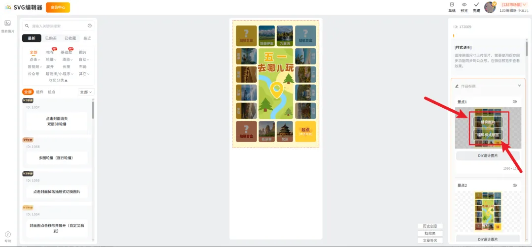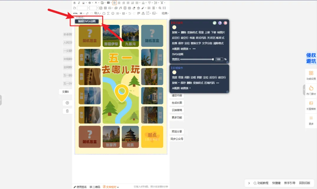 01.选中「SVG样式」或「SVG长图」左上角会出现「编辑SVG/动画」点击进入编辑页面