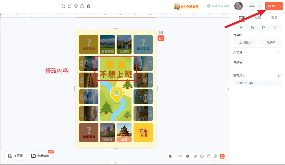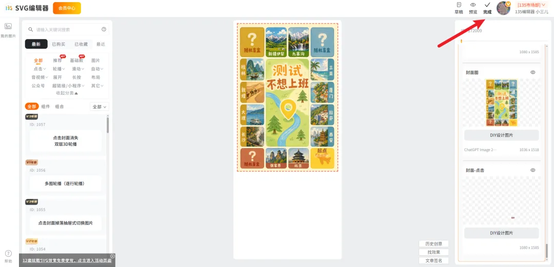 05.替换素材图结束后,记得点击右上角的「完成」按钮,完成素材图的更换。