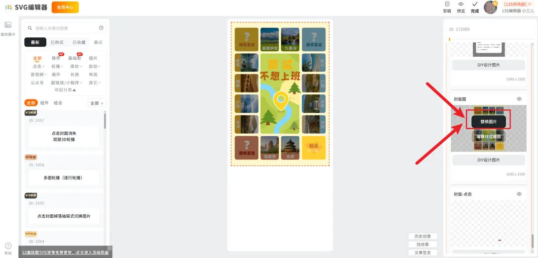 04.如果想要替换自己的设计图,也没问题。在SVG编辑界面选择「替换原图」即可,不过需要注意的是,替换的素材图需要和原图尺寸保持一致。