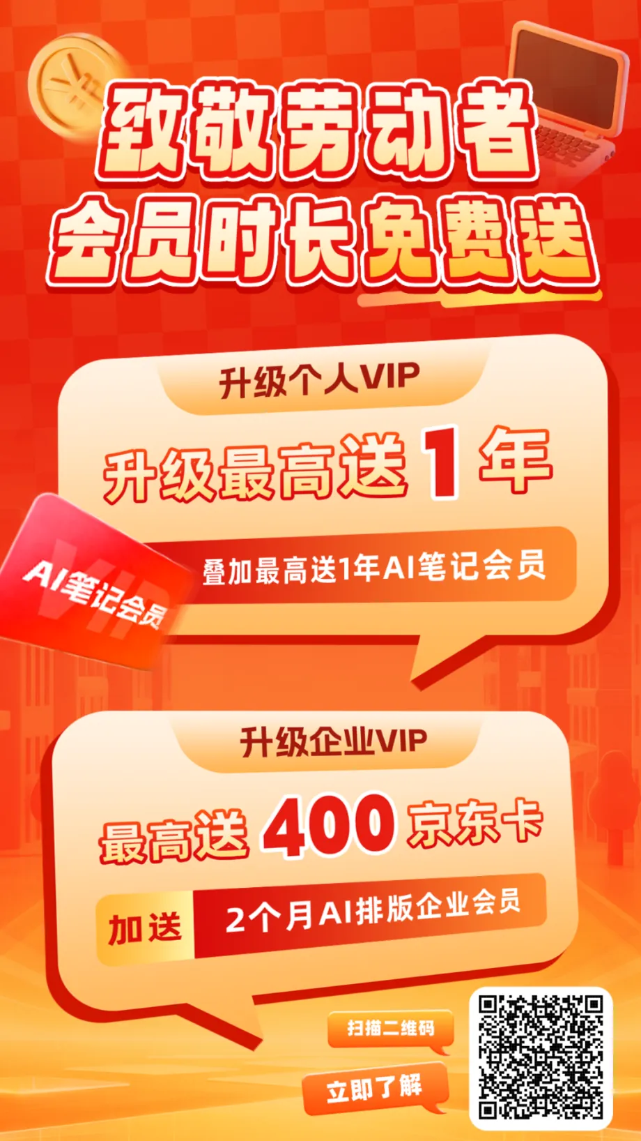 400京东卡+2个月AI排版企业会员
